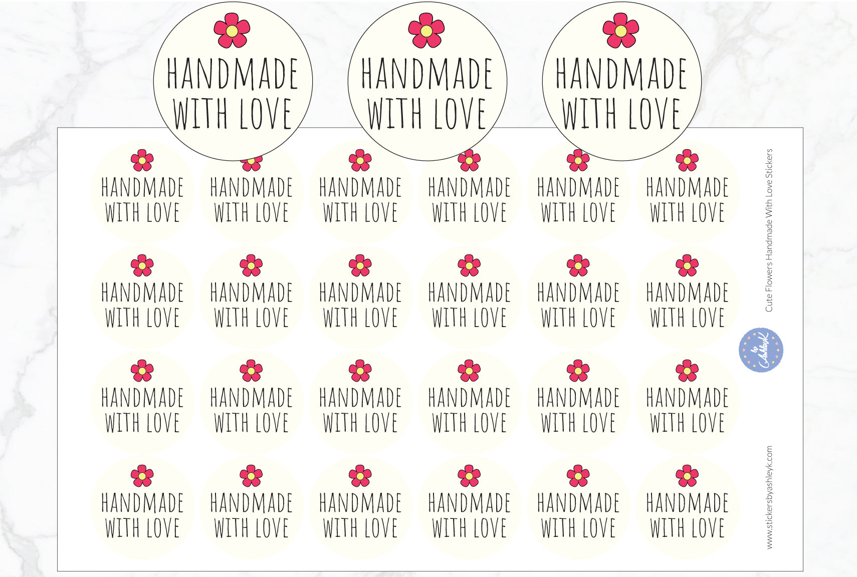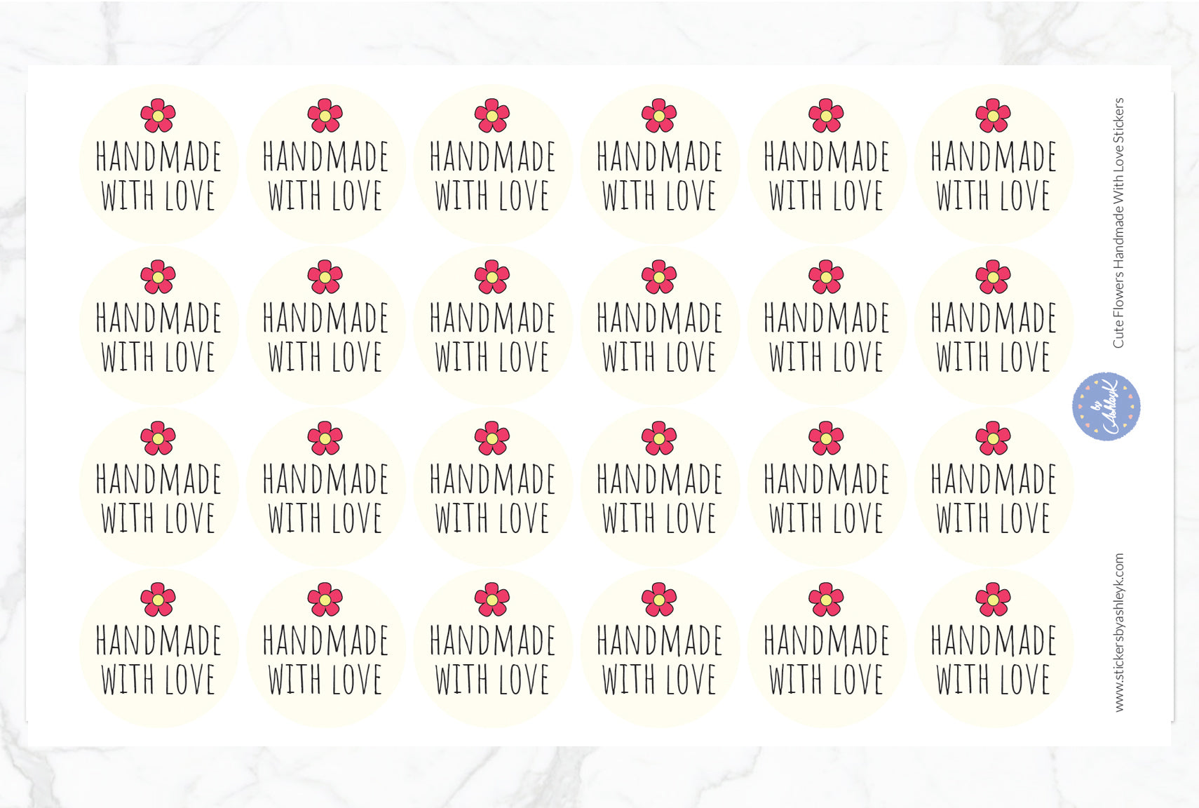 These cute flower handmade with love stickers - 28 mm diameter have been designed by AshleyK to complement your sales packaging or personal thank you cards and gifts.