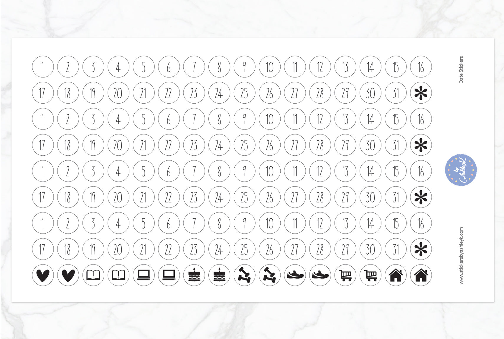 These date stickers planner stickers have been beautifully designed by AshleyK to perfectly suit your Erin Condren Life Planner, Kikki K, FiloFax, The Happy Planner or other planner.