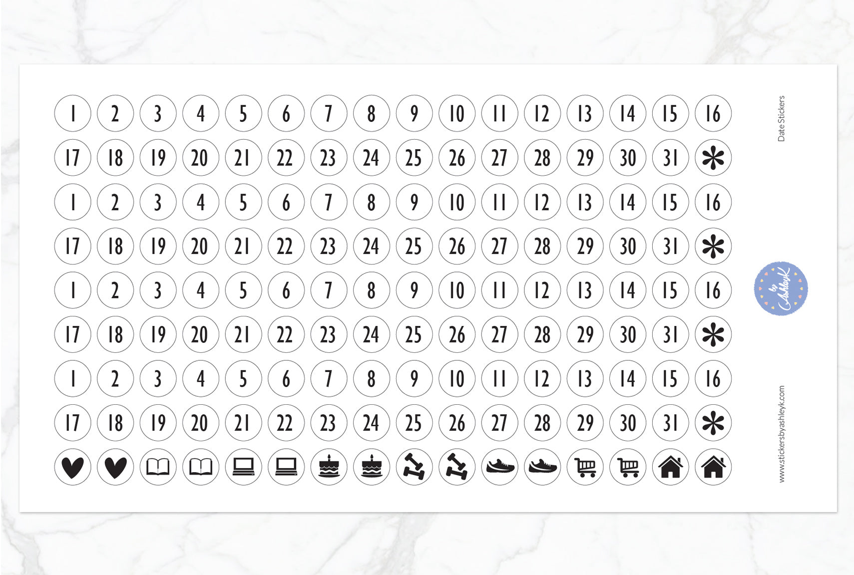 These date stickers planner stickers have been beautifully designed by AshleyK to perfectly suit your Erin Condren Life Planner, Kikki K, FiloFax, The Happy Planner or other planner.