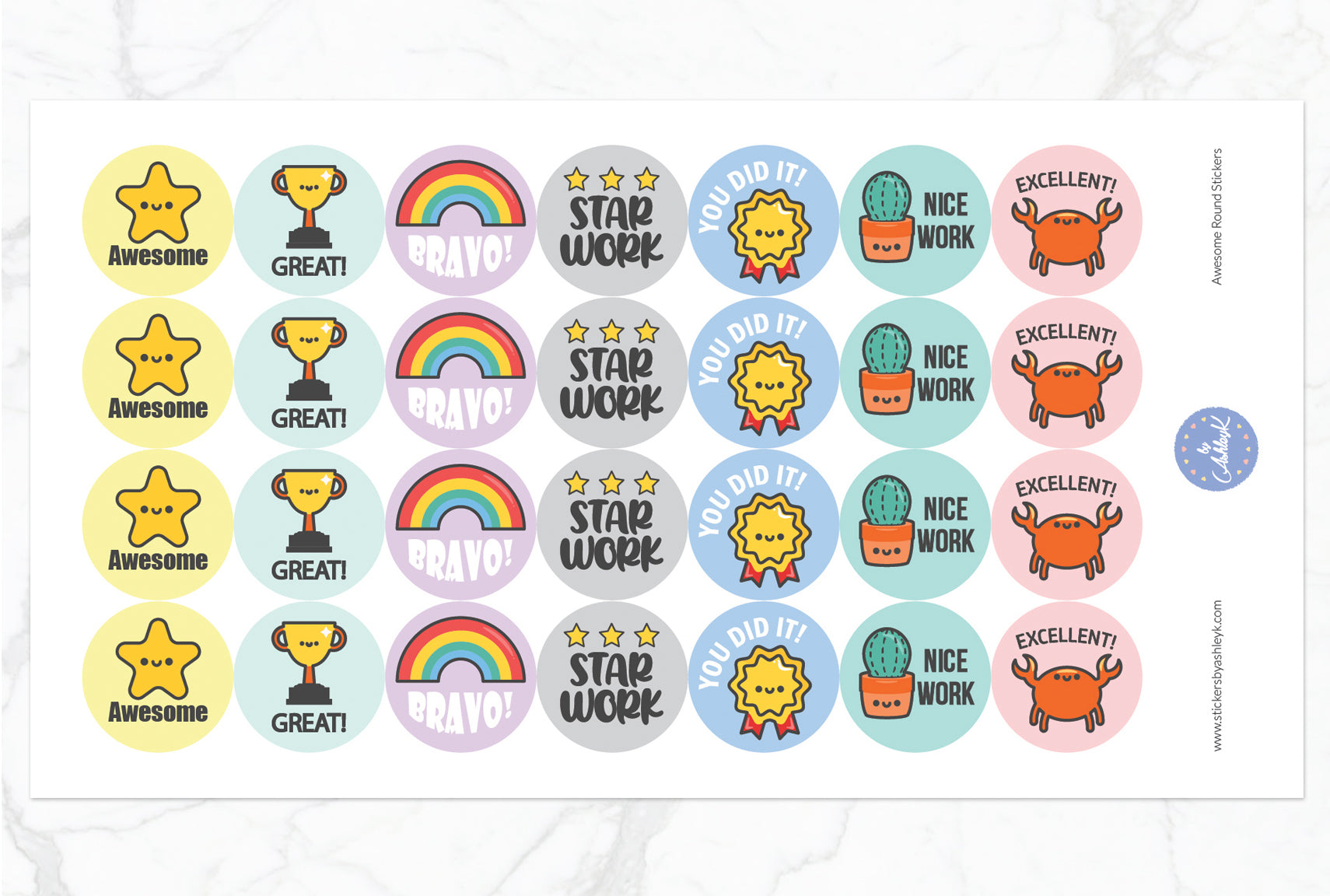 Whether you're a teacher looking to reward your students or a parent supporting your child's learning journey at home, our "Awesome!" stickers are the perfect choice. Add a splash of positivity to any achievement and watch as their faces light up with pride!
