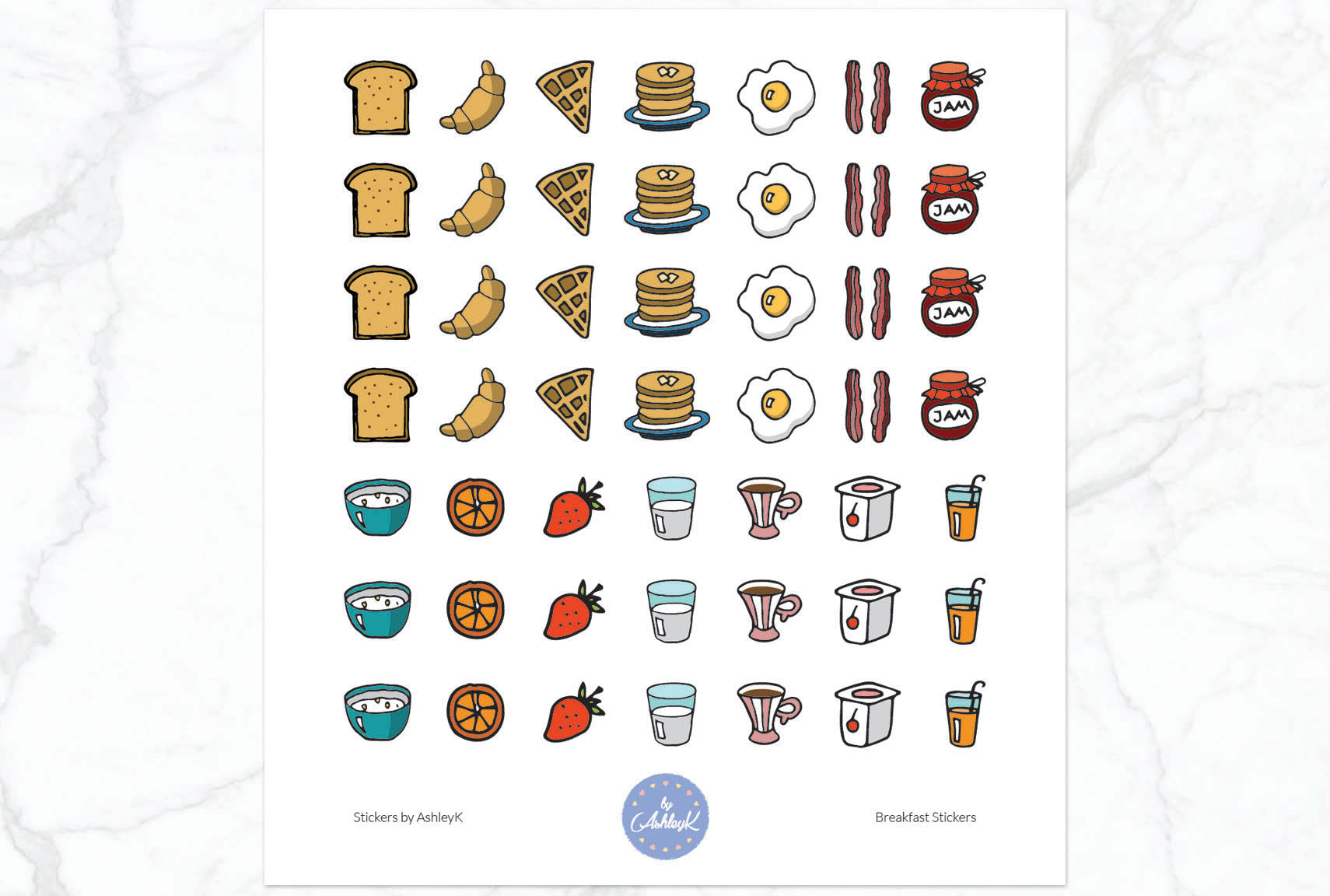 These breakfast planner stickers have been beautifully designed by AshleyK to perfectly suit your Erin Condren Life Planner, Kikki K, FiloFax, The Happy Planner or other planner.