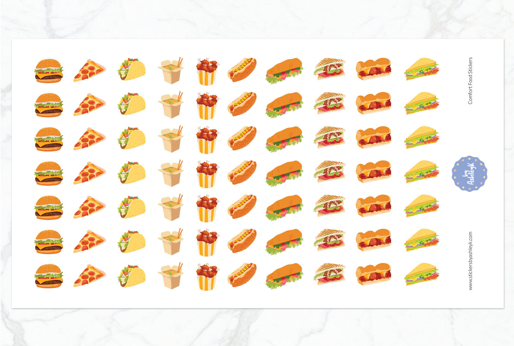 Satisfy your cravings and keep your planner looking delicious with these Comfort Food Planner Stickers! Featuring mouthwatering illustrations of all your favourite indulgent foods—juicy burgers, cheesy pizza, crispy fried chicken, savoury noodle boxes, and zesty tacos—these stickers are perfect for adding a fun, tasty touch to your planner or bullet journal. Whether you're marking a special meal, a food-themed day, or just want to add a little flavour to your week, these stickers are sure to make you smile every time you glance at your schedule. Grab yours and let your planner reflect your love for comfort food!