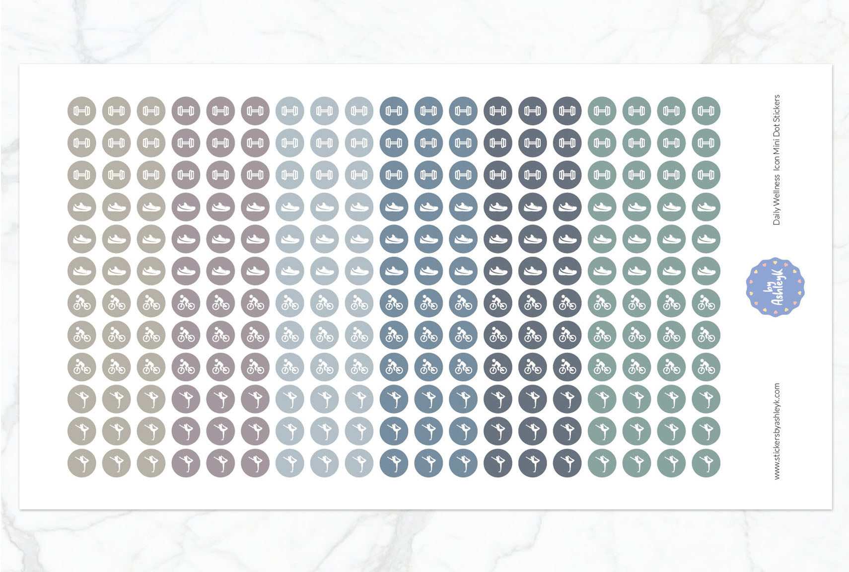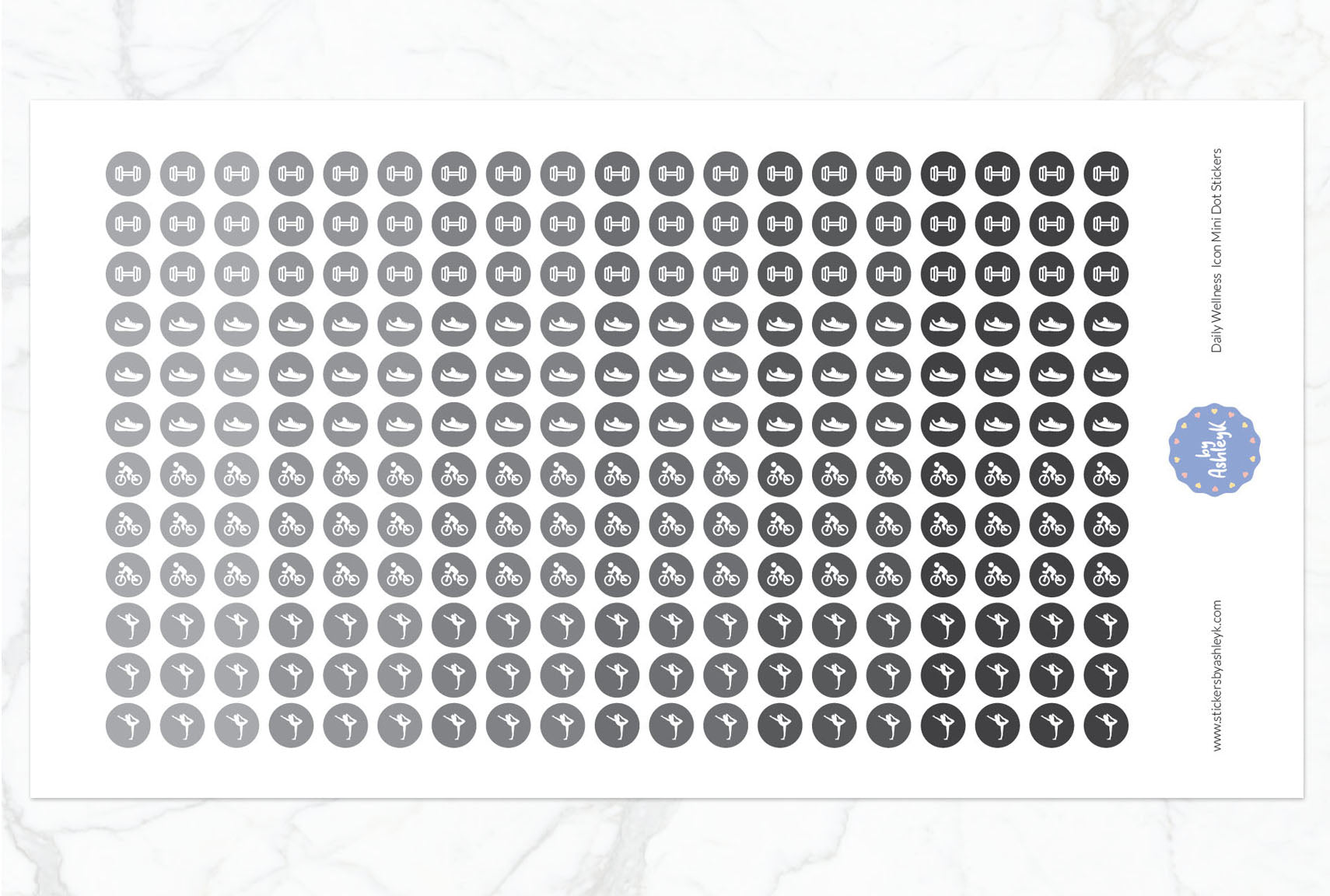 Stay active and organised with my Daily Wellness icon mini dot stickers. This sheet features a functional mix of dumbbells, running shoes, cycling, and yoga pose icons to track all your favourite ways to move. Each sticker is designed as a tiny circle, making them the perfect fit for even the smallest planner spreads or habit trackers. Their minimalist aesthetic ensures your pages stay clean and clutter-free while still highlighting your daily achievements. Whether you are hitting the gym or finding your zen, these stickers help you visualise your progress at a glance. Make movement a beautiful part of your daily routine with this essential fitness set.