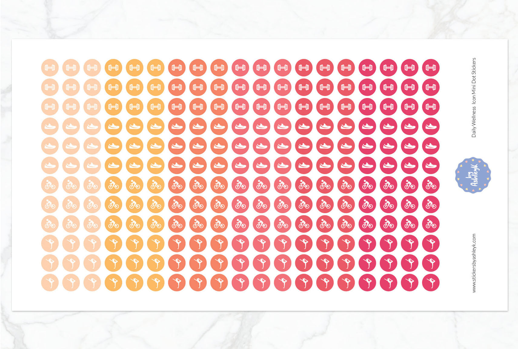 These daily wellness icon mini dot planner stickers have been beautifully designed by AshleyK to perfectly suit your Erin Condren Life Planner, Kikki K, FiloFax, The Happy Planner or other planner.