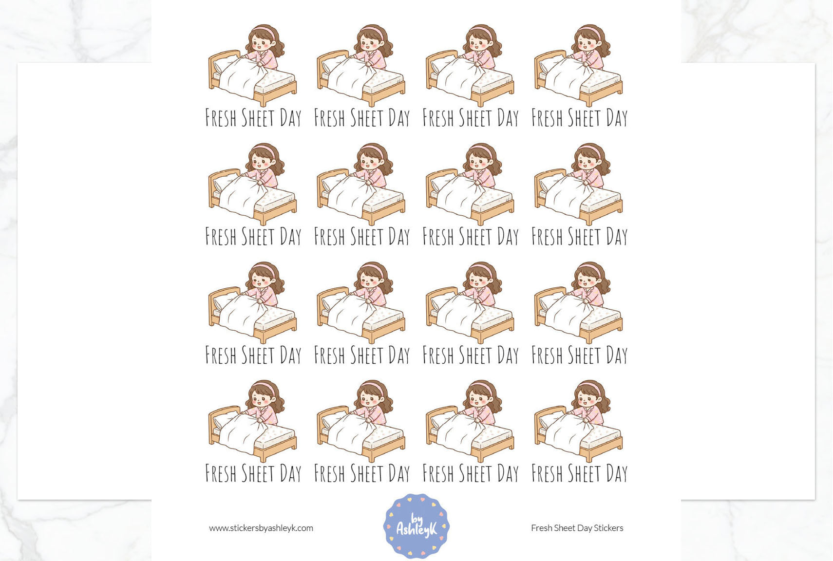 Make room for that unmatched feeling of clean sheets in your planner! My Fresh Sheet Day stickers are the perfect visual reminder to schedule and celebrate your weekly or bi-weekly bedding change. Use these cute, task-focused stickers to clearly mark the day you tackle this chore, ensuring a tidy home and a great night's sleep. Transform a mundane task into a satisfying habit you look forward to!