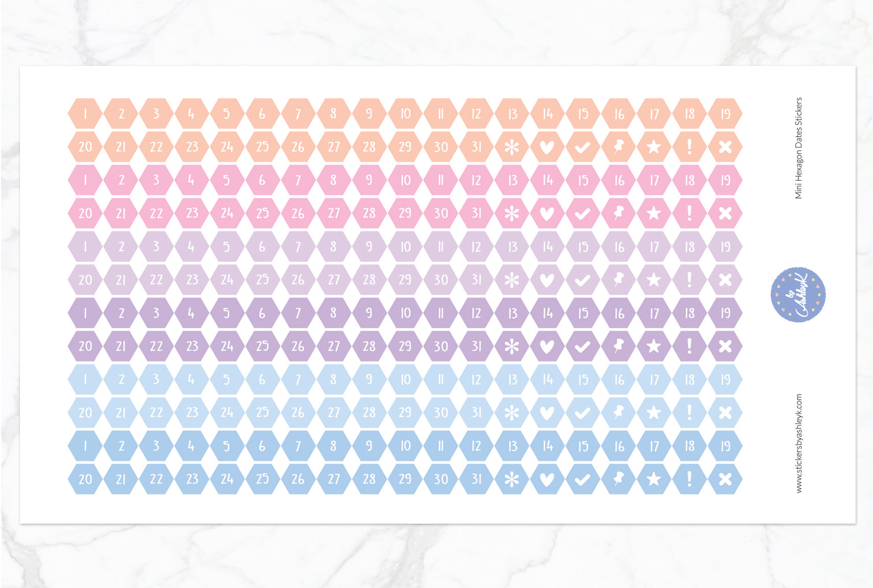 These mini hexagon dates planner stickers have been beautifully designed by AshleyK to perfectly suit your Erin Condren Life Planner, Kikki K, FiloFax, The Happy Planner or other planner.