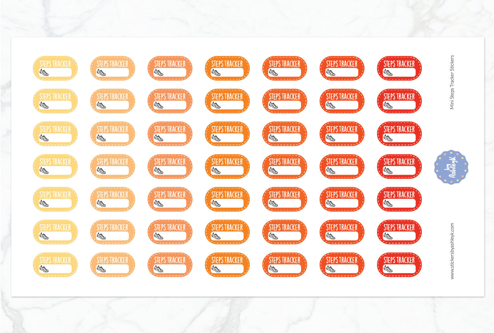 Mini Steps Tracker Planner Stickers - Orange