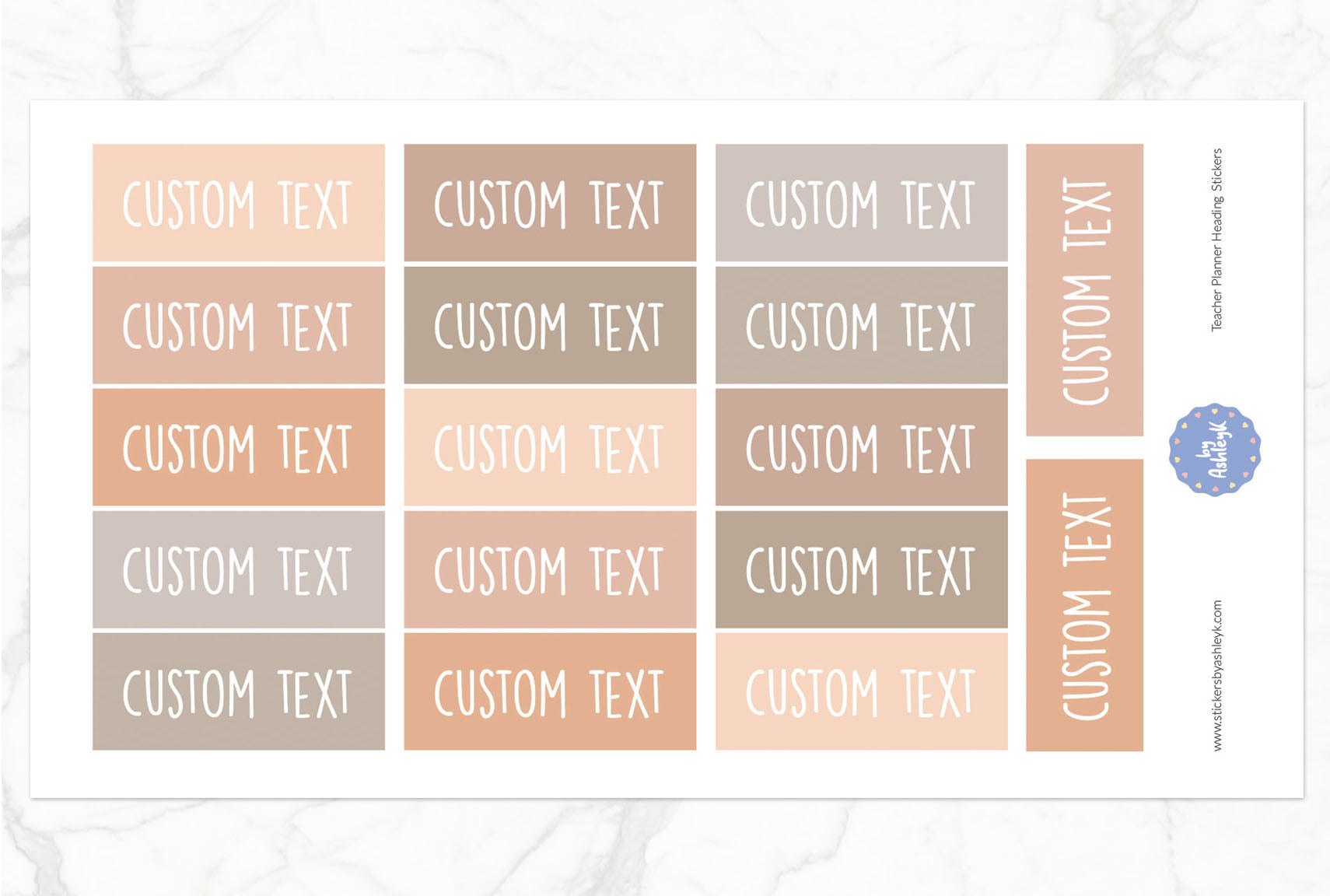 Teacher Planner Custom Text Heading Planner Stickers - Beige Neutral