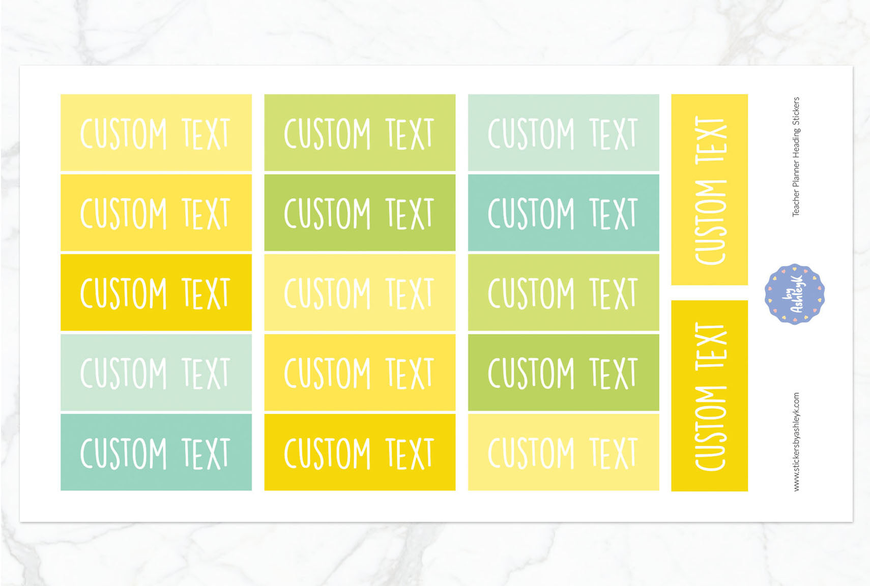 Teacher Planner Custom Text Heading Planner Stickers - Lemon&Lime
