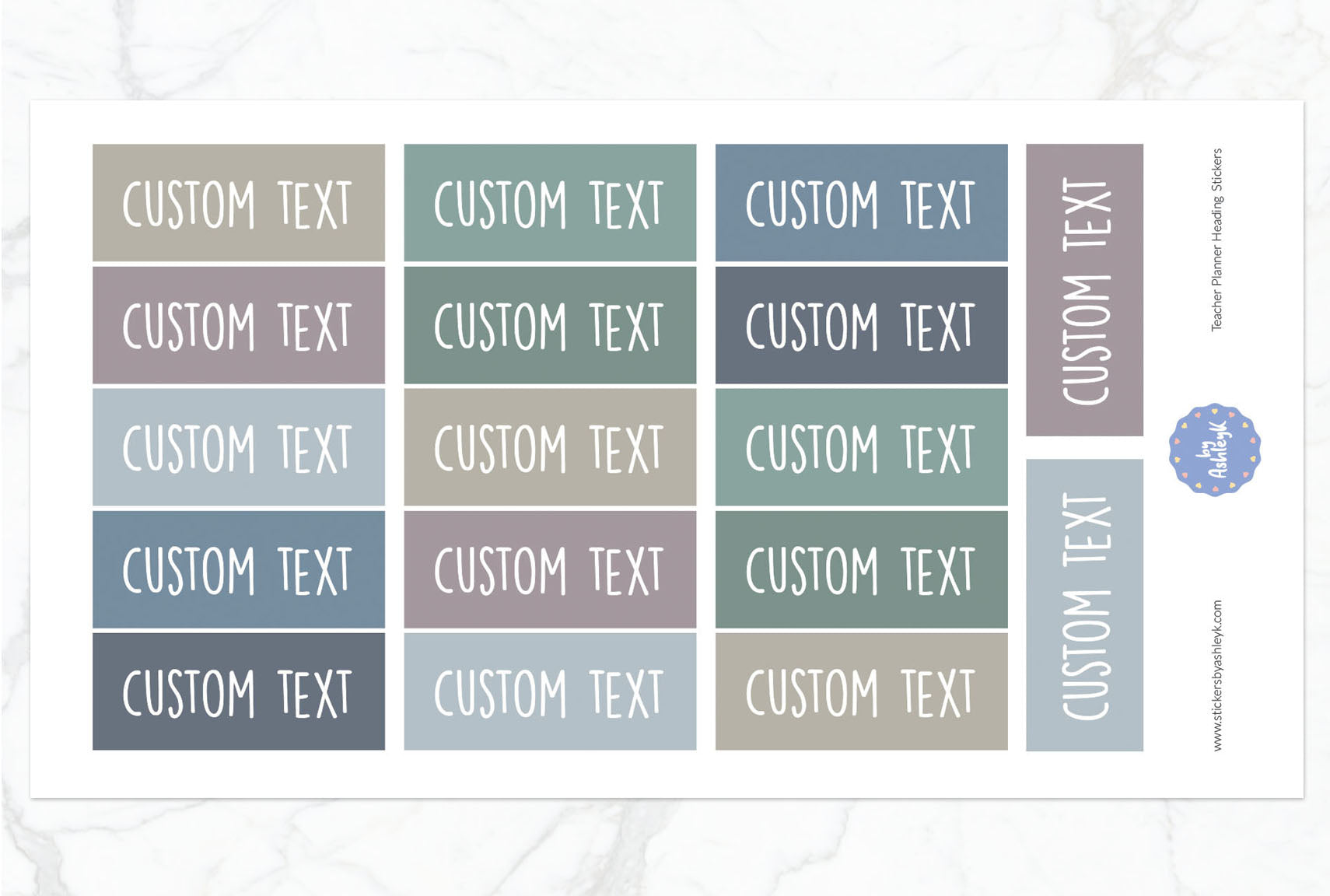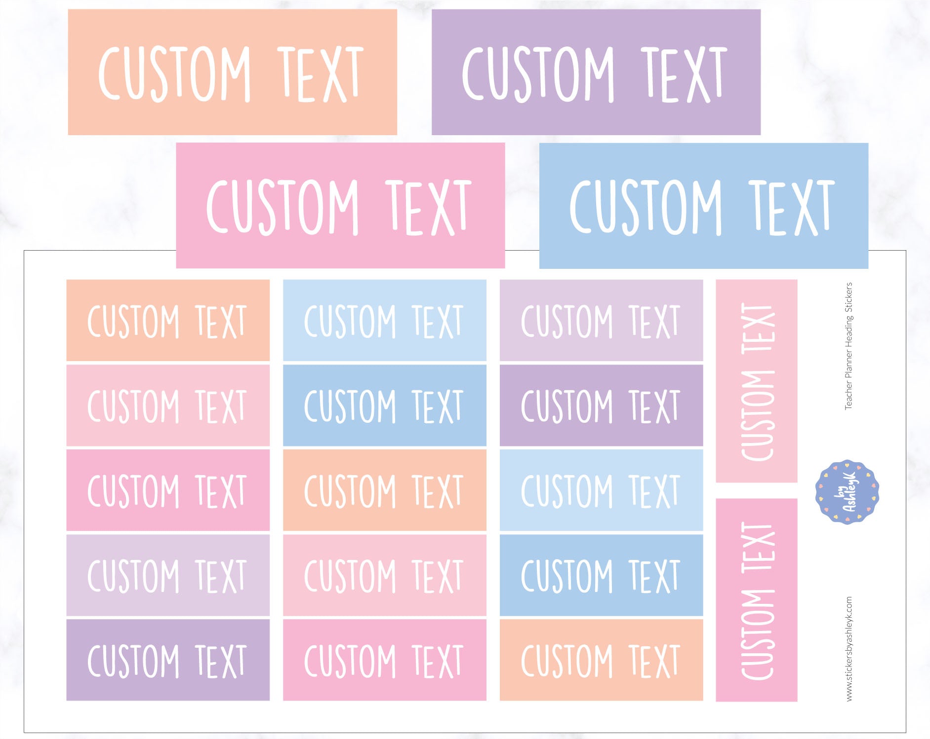 Teacher Planner Custom Text Heading Planner Stickers - Pastel
