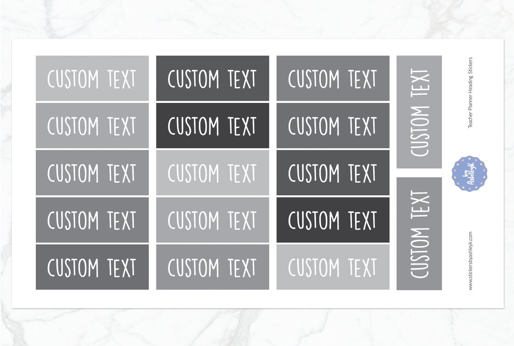Teacher Planner Custom Text Heading Planner Stickers - Monochrome