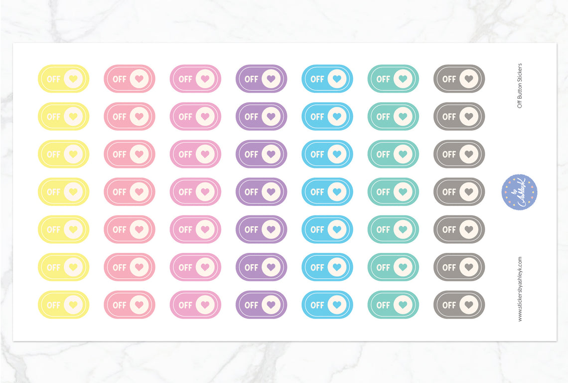 These off button planner stickers have been beautifully designed by AshleyK to perfectly suit your Erin Condren Life Planner, Kikki K, FiloFax, The Happy Planner or other planner.