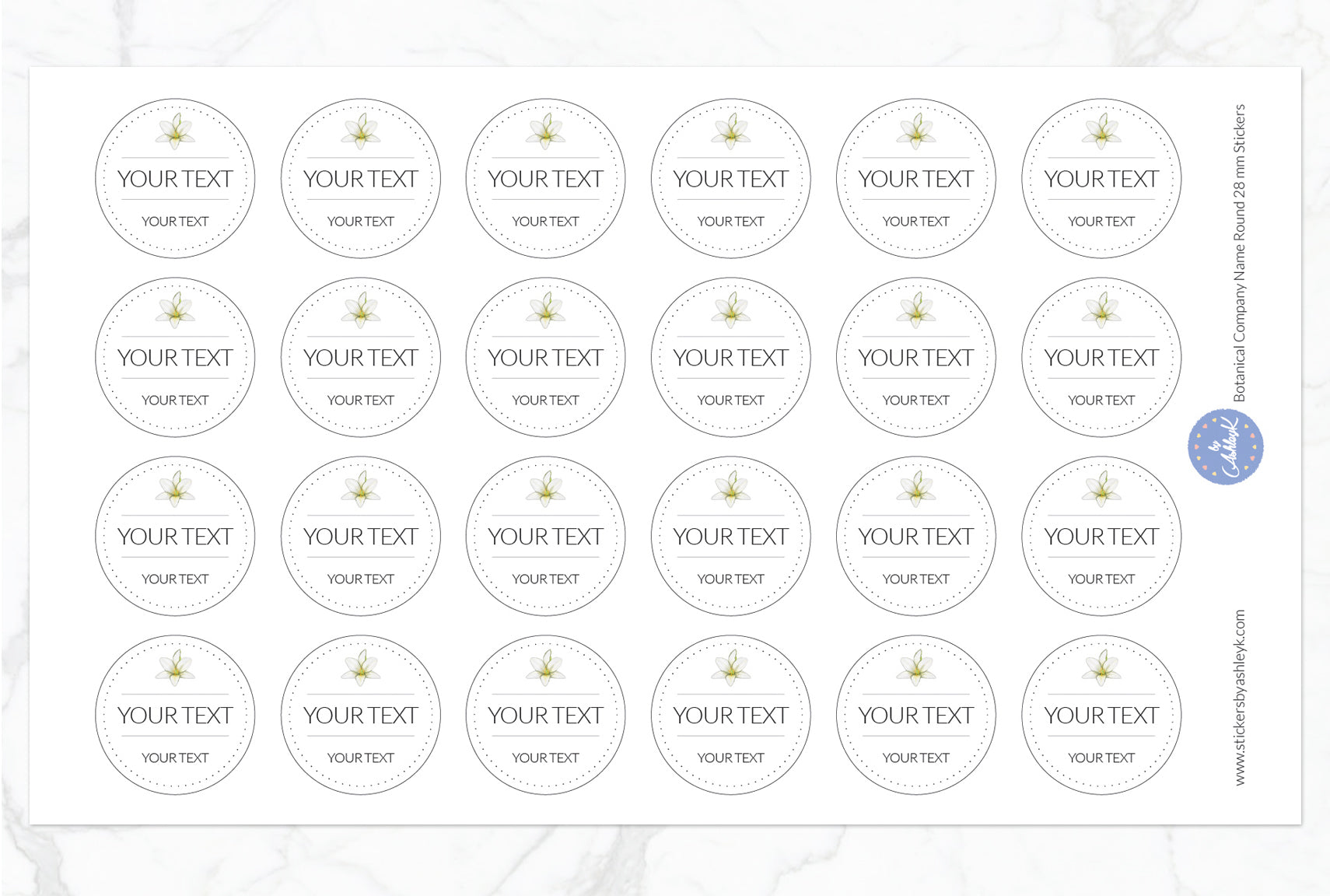 These botanical company name round stickers - 28 mm diameter have been designed by AshleyK to complement your sales packaging or personal thank you cards and gifts.