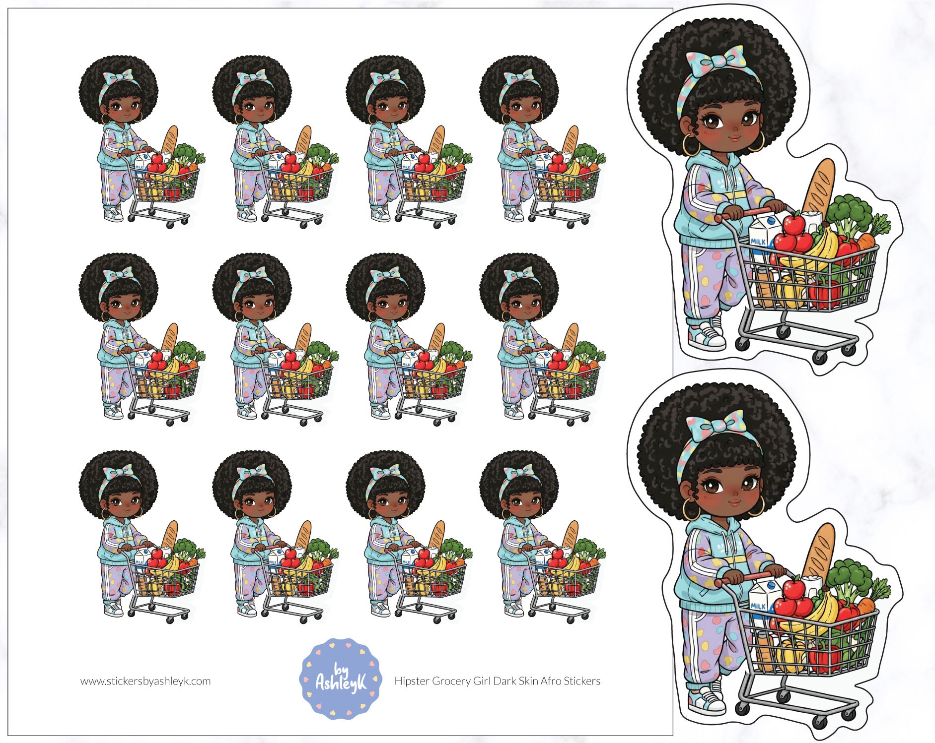 These hipster grocery girl dark skin afro planner stickers have been beautifully designed by AshleyK to perfectly suit your Erin Condren Life Planner, Kikki K, FiloFax, The Happy Planner or other planner.