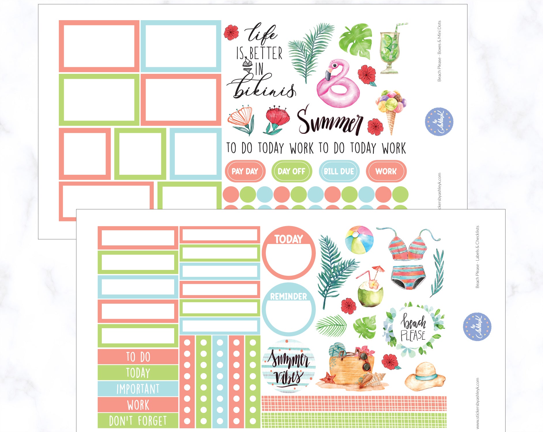 These Beach Please weekly spread planner stickers have been beautifully designed by AshleyK to perfectly suit your Erin Condren Life Planner, Kikki K, FiloFax, The Happy Planner or other planner.