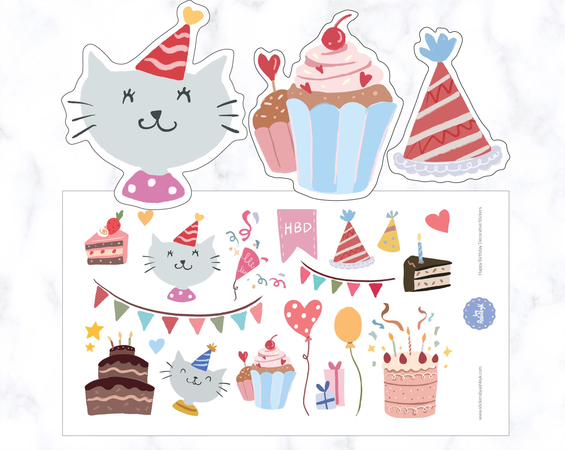 These Happy Birthday decorative planner stickers have been beautifully designed by AshleyK to perfectly suit your Erin Condren Life Planner, Kikki K, FiloFax, The Happy Planner or other planner.