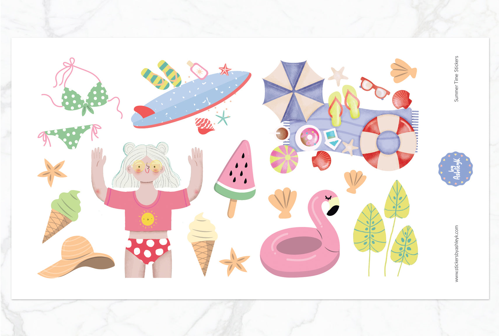 These summer time decorative planner stickers have been beautifully designed by AshleyK to perfectly suit your Erin Condren Life Planner, Kikki K, FiloFax, The Happy Planner or other planner.