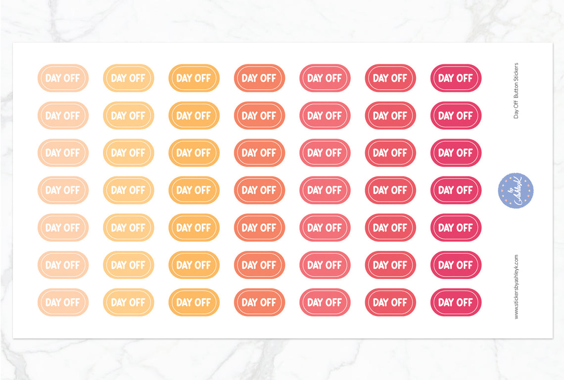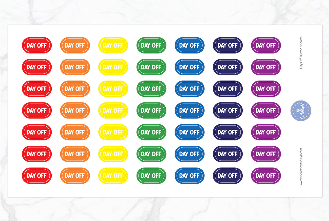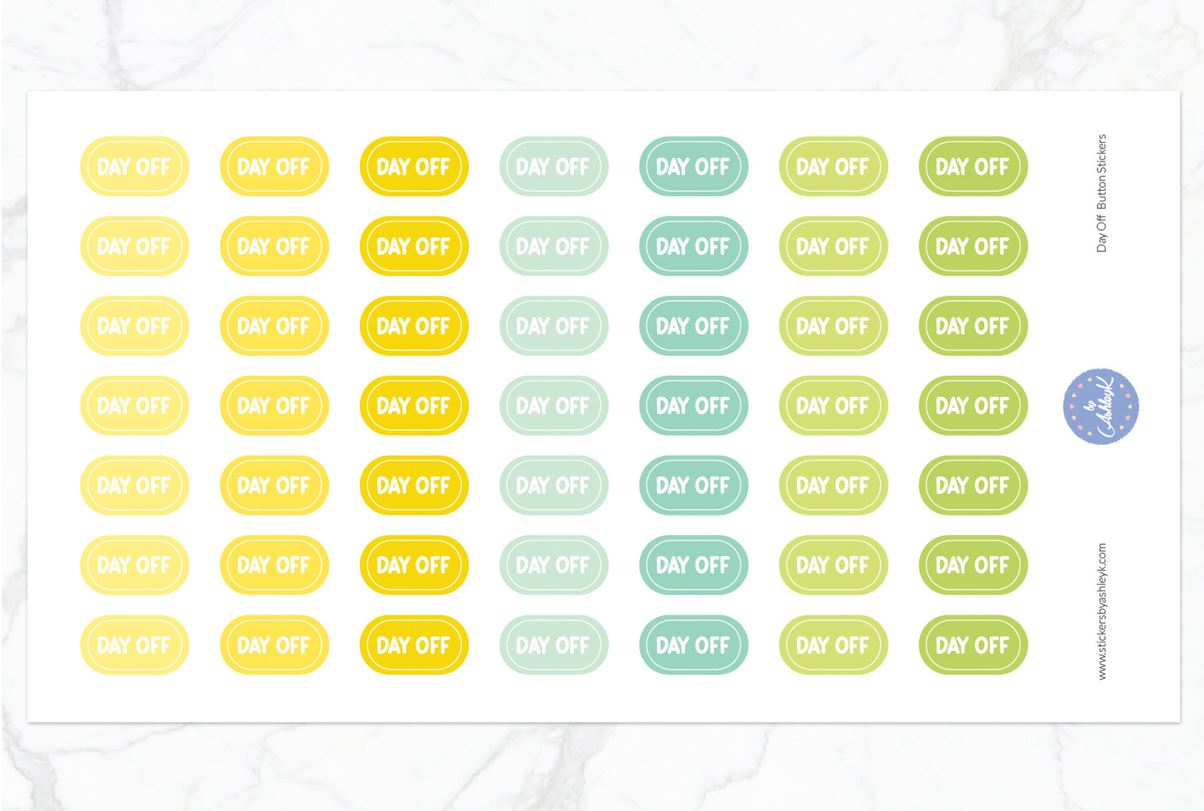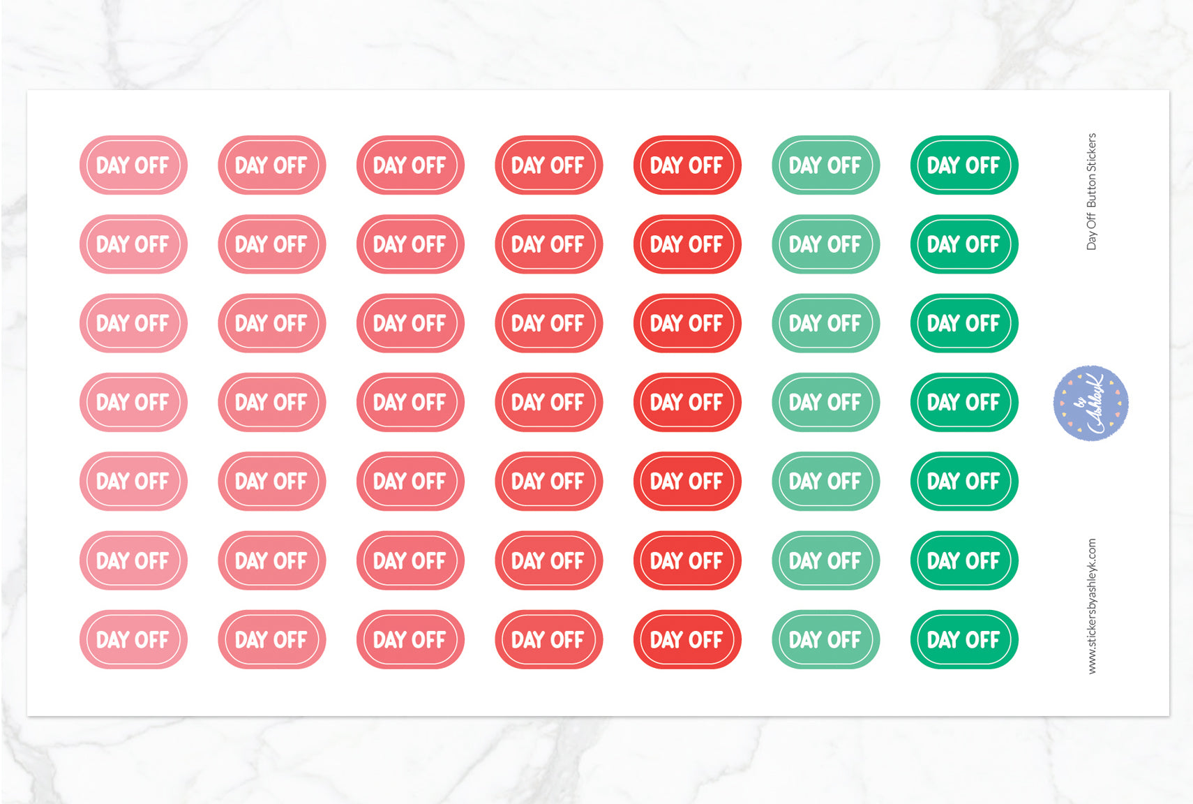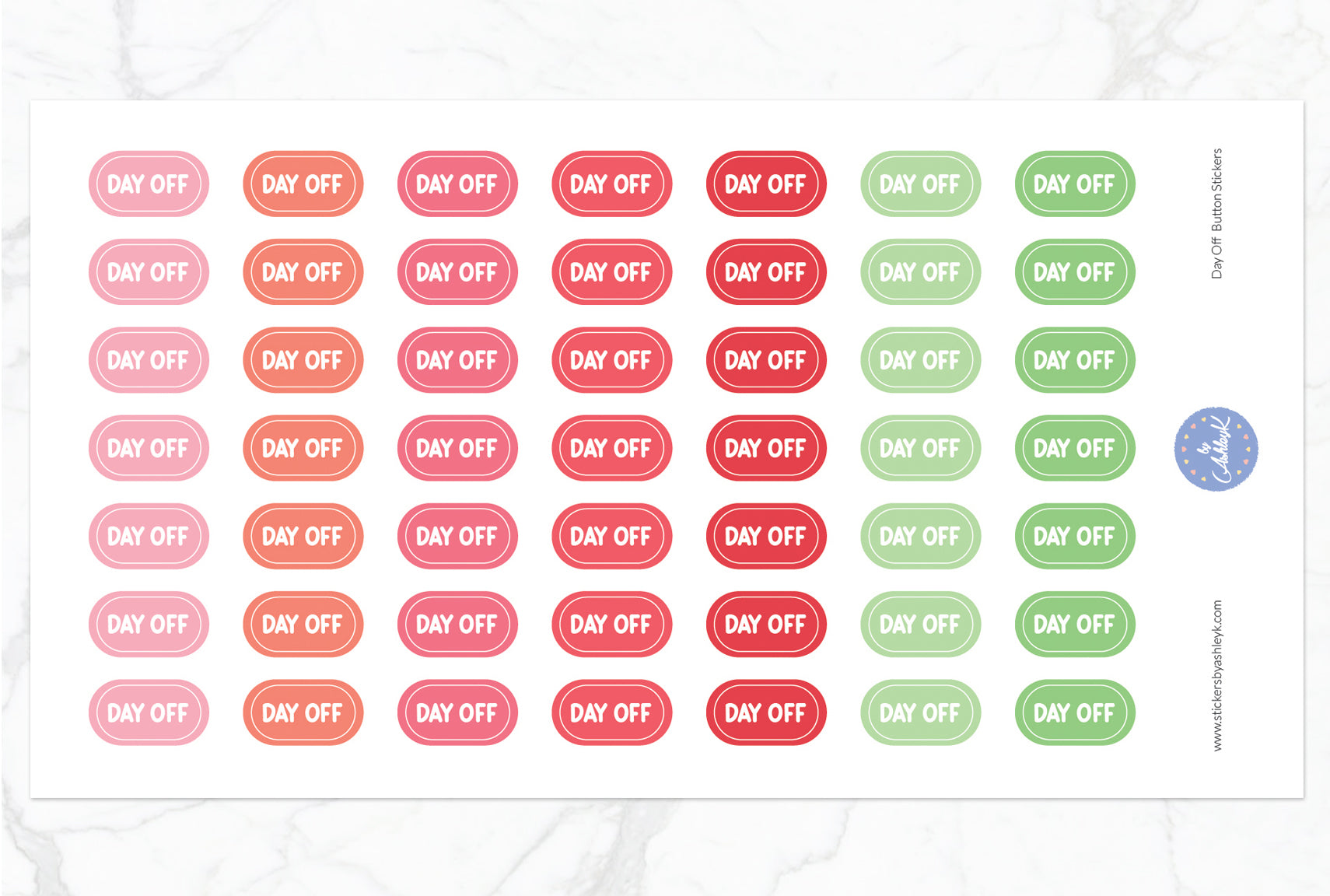 These day off button planner stickers have been beautifully designed by AshleyK to perfectly suit your Erin Condren Life Planner, Kikki K, FiloFax, The Happy Planner or other planner.