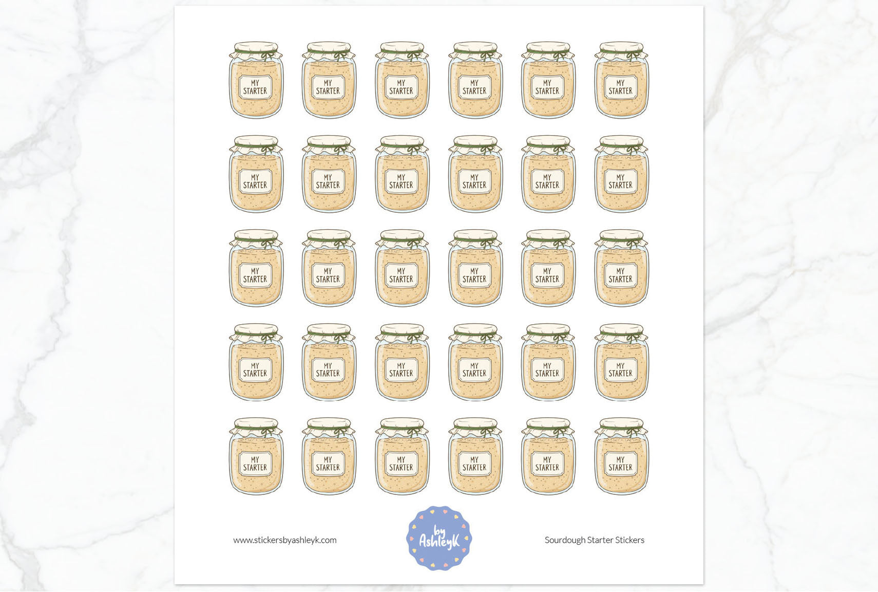 These stickers feature a cosy, hand-drawn jar of sourdough starter designed to mark recipes that require a "fed starter" in your cookbook or planner. They act as a clear visual tag for your fermented baking projects.