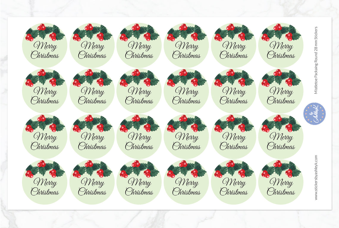 Mistletoe Packaging Round Stickers - 28 mm Diameter