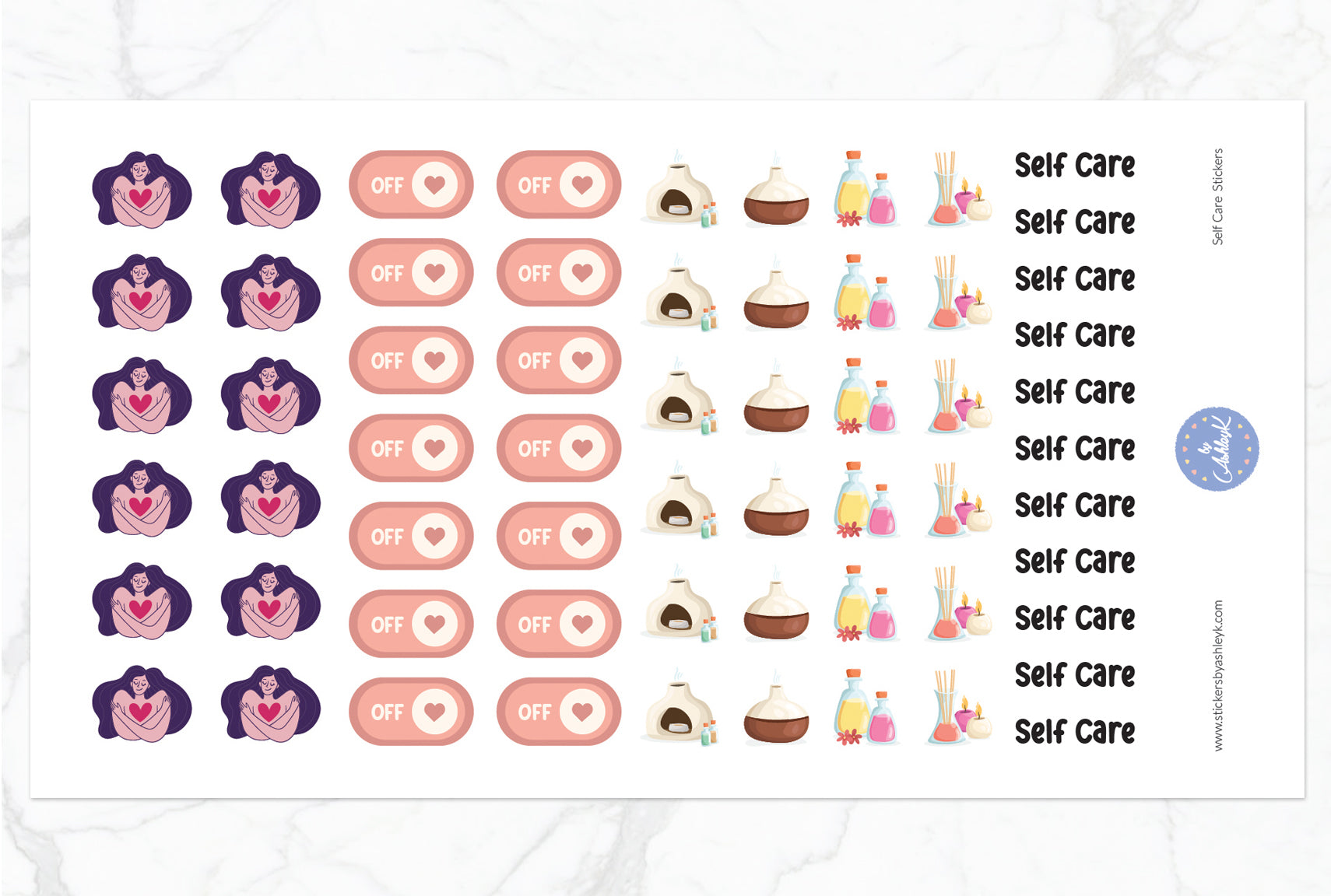 These self care planner stickers have been beautifully designed by AshleyK to perfectly suit your Erin Condren Life Planner, Kikki K, FiloFax, The Happy Planner or other planner.