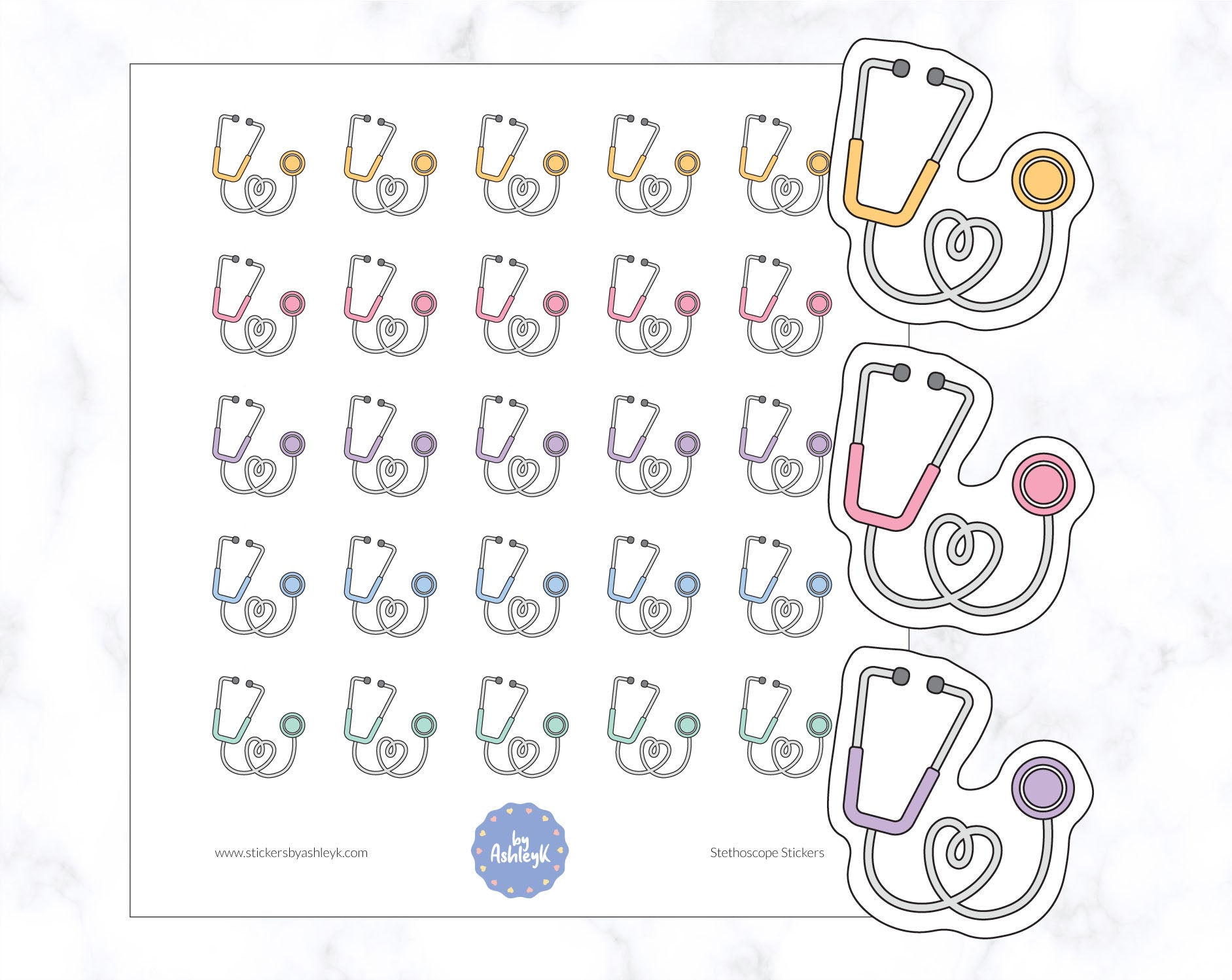 These stethoscope planner stickers have been beautifully designed by AshleyK to perfectly suit your Erin Condren Life Planner, Kikki K, FiloFax, The Happy Planner or other planner.