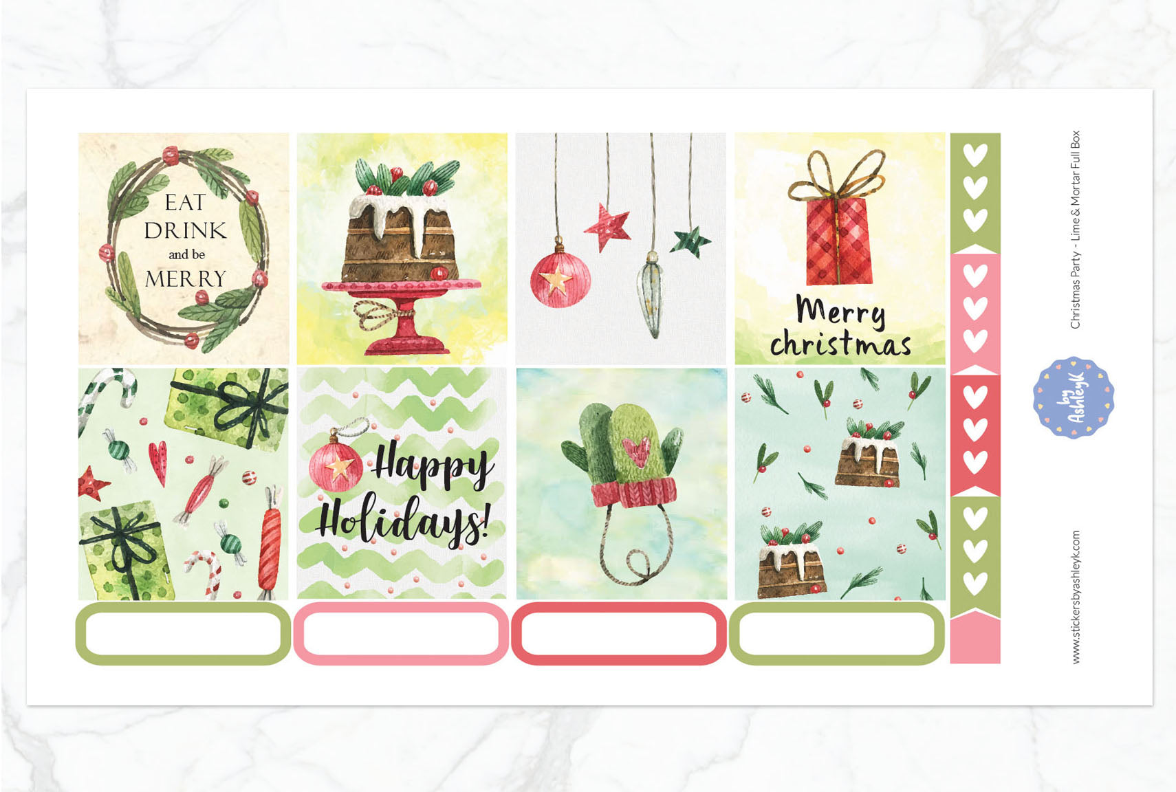 These Christmas Party Full Box Stickers have been beautifully designed by AshleyK to perfectly suit your Lime and Mortar planner.