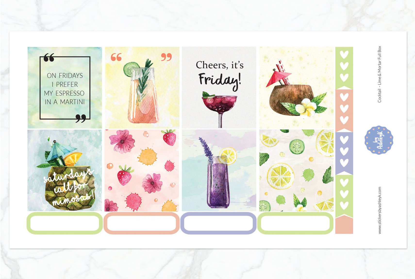 These Cocktail Full Box Stickers have been beautifully designed by AshleyK to perfectly suit your Lime and Mortar planner.