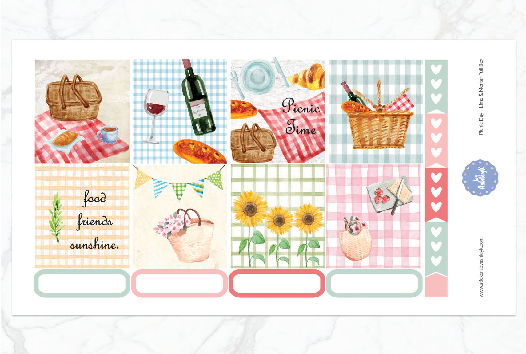 These Picnic Day Full Box Stickers have been beautifully designed by AshleyK to perfectly suit your Lime and Mortar planner.