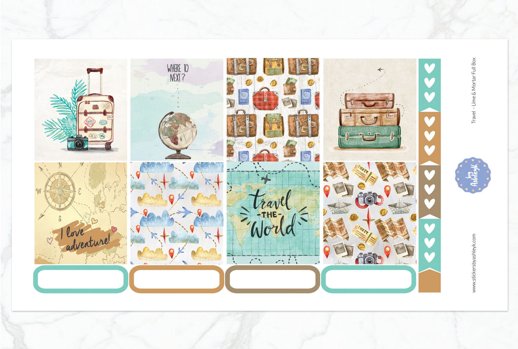 These Travel Full Box Stickers have been beautifully designed by AshleyK to perfectly suit your Lime and Mortar planner.