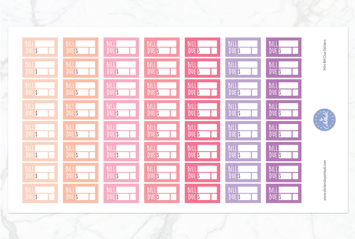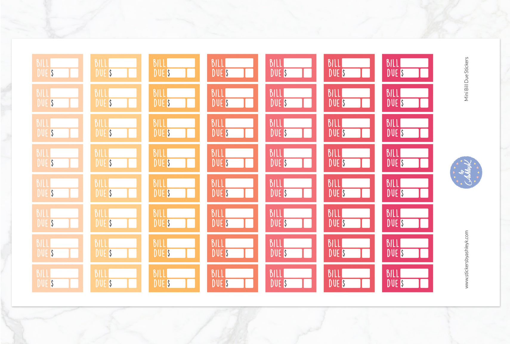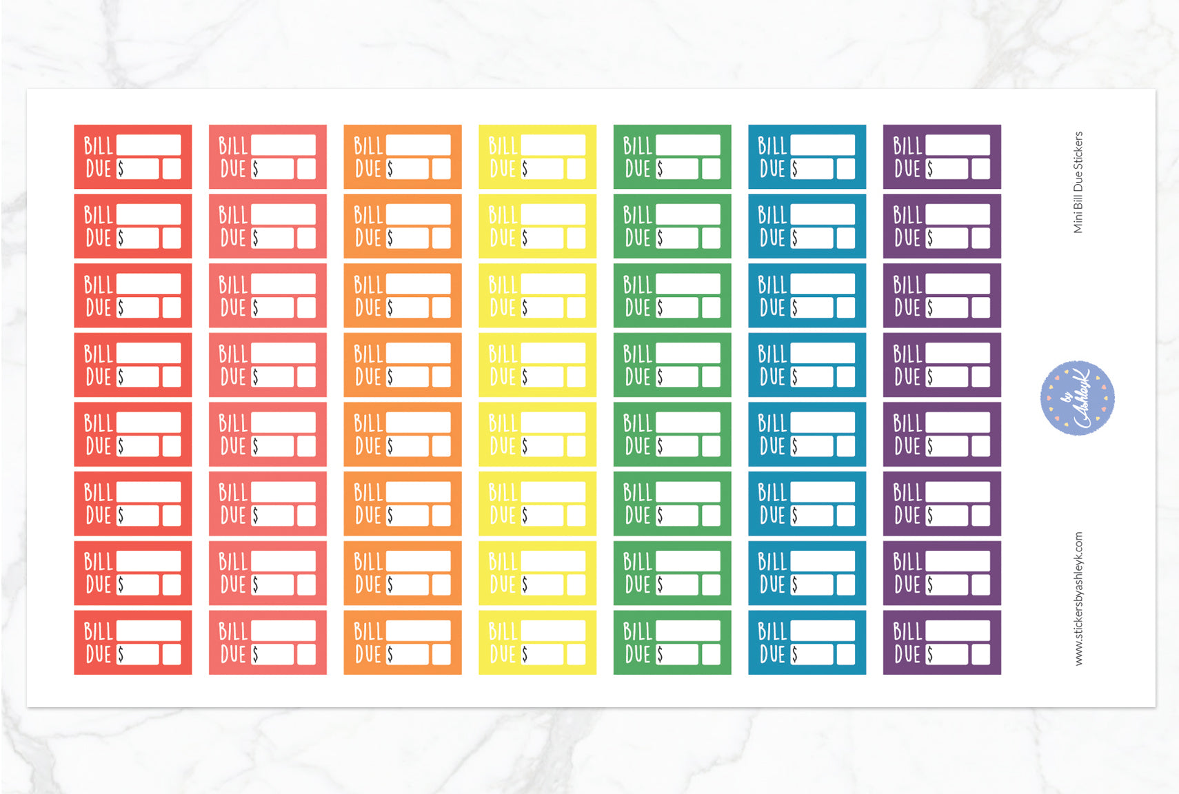 These mini bill due planner stickers have been beautifully designed by AshleyK to perfectly suit your Erin Condren Life Planner, Kikki K, FiloFax, The Happy Planner or other planner.
