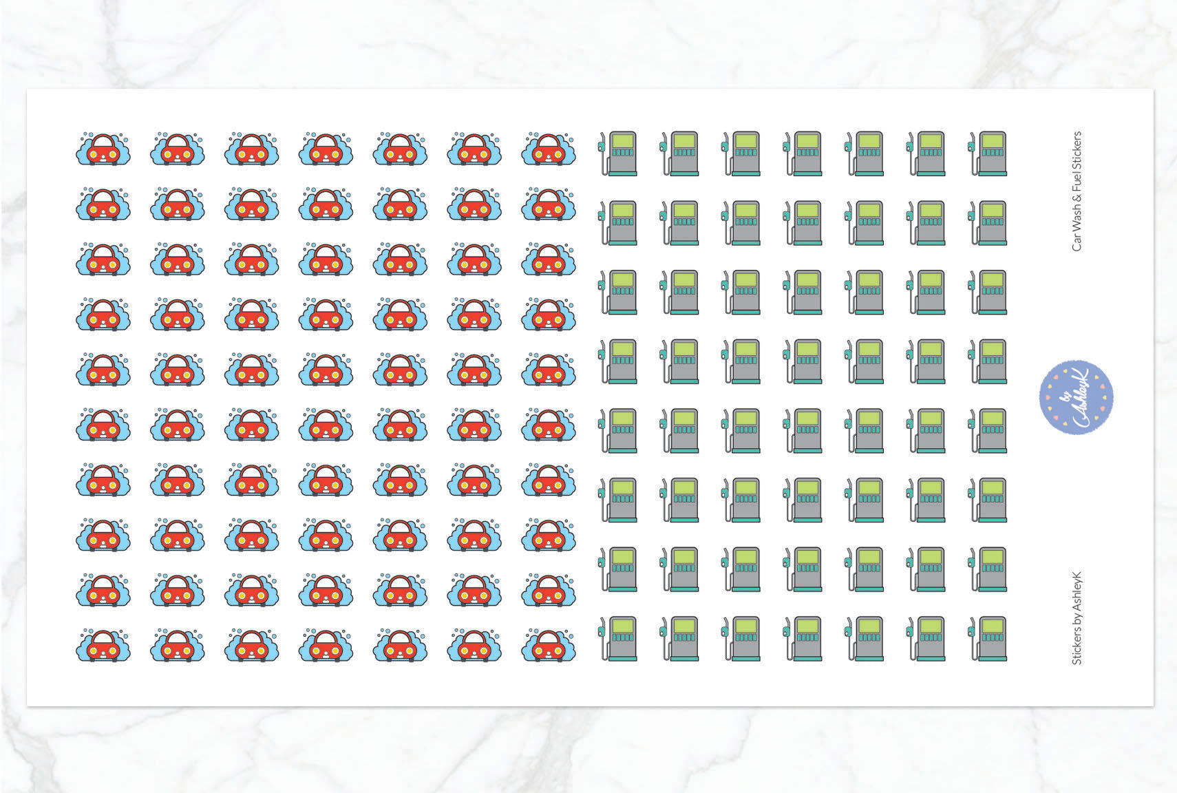 These car wash and fuel planner stickers have been beautifully designed by AshleyK to perfectly suit your Erin Condren Life Planner, Kikki K, FiloFax, The Happy Planner or other planner.