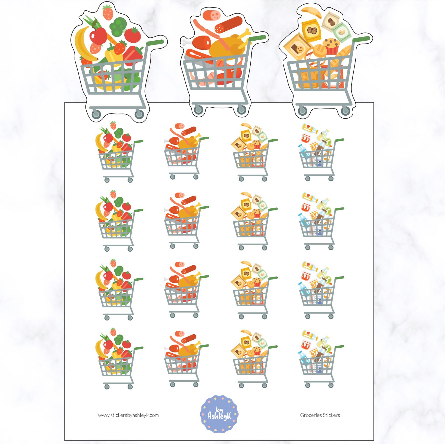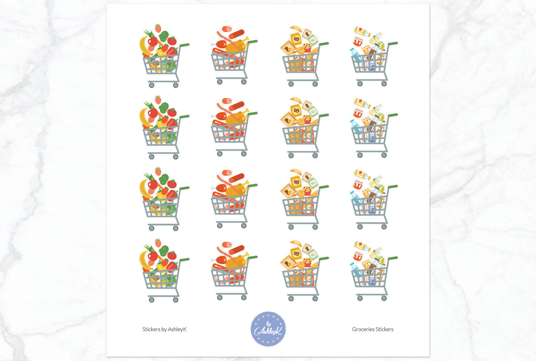 Bring joy to your planning routine with these cute grocery shopping cart planner stickers! Featuring playful and colourful cart designs, they're perfect for highlighting shopping trips, budgeting days, or meal planning in your planner or journal.