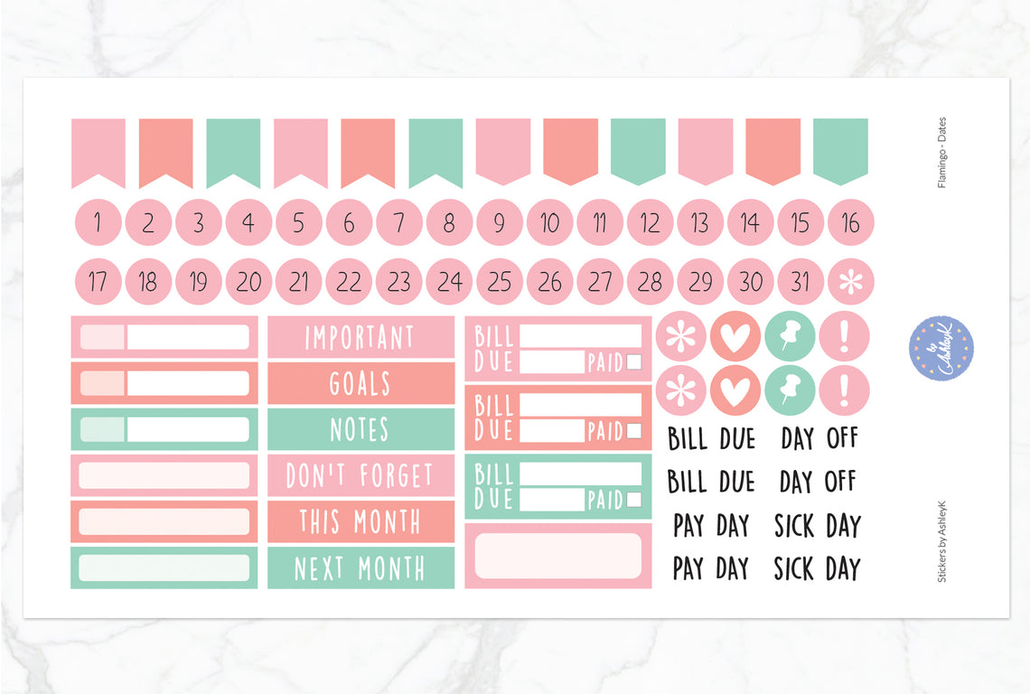 This Flamingo monthly sticker kit has been beautifully designed by AshleyK to perfectly suit your Erin Condren Planner.