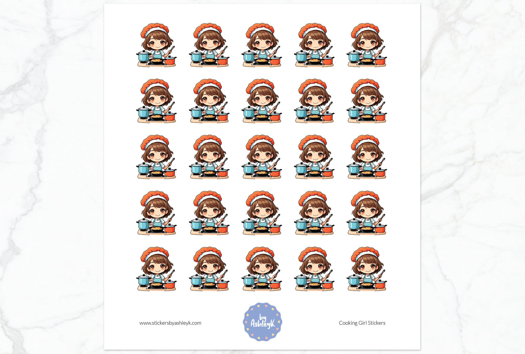 Add a sprinkle of fun and inspiration to your culinary adventures with these Cooking Girl Stickers. Whether you're planning your weekly meals or just looking to add some personality to your cooking space, these stickers are the perfect choice!