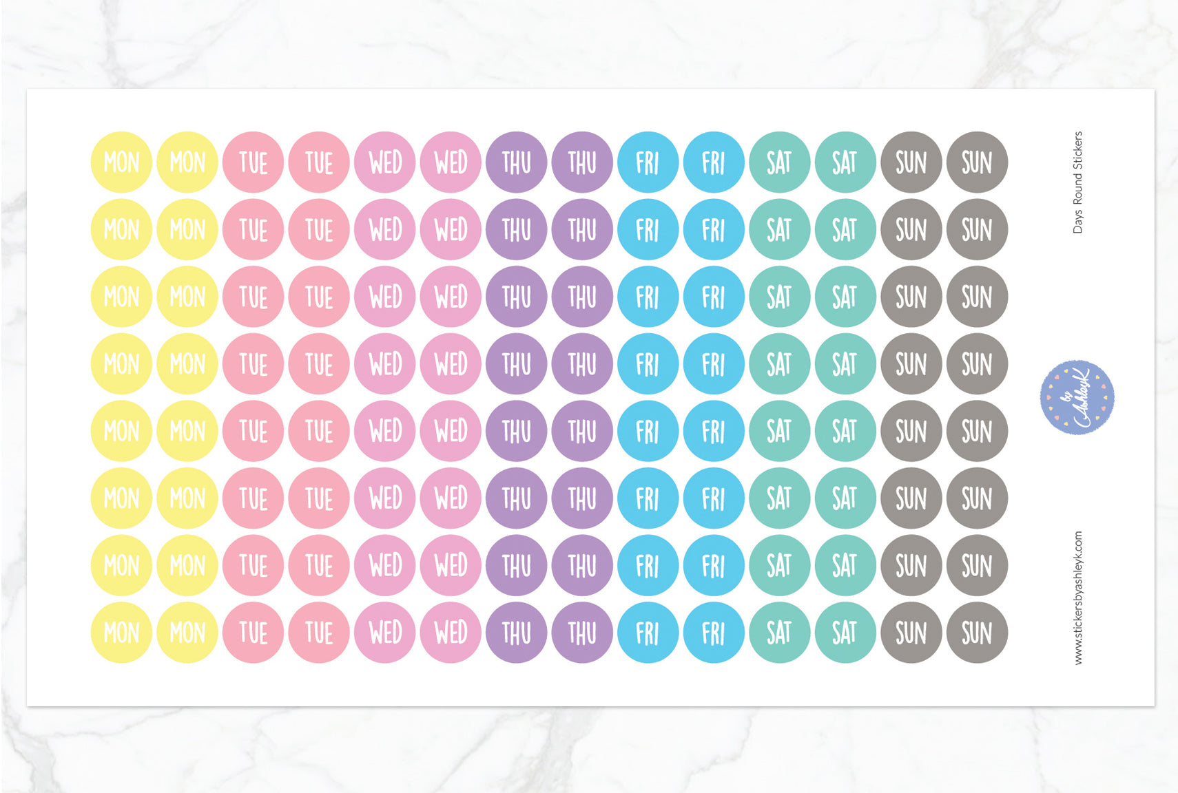 Days Round Stickers - Pastel