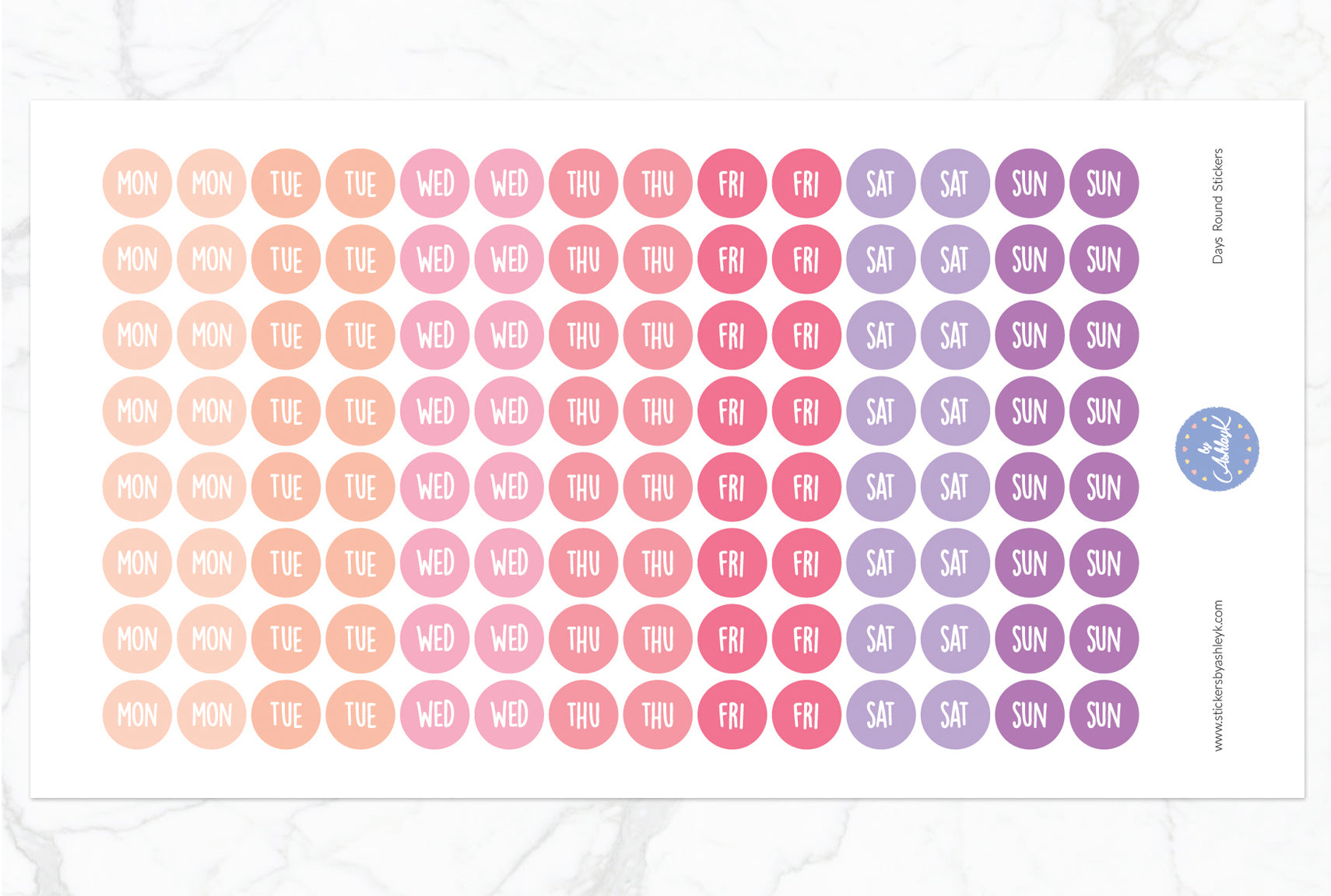 Days Round Stickers - Peach