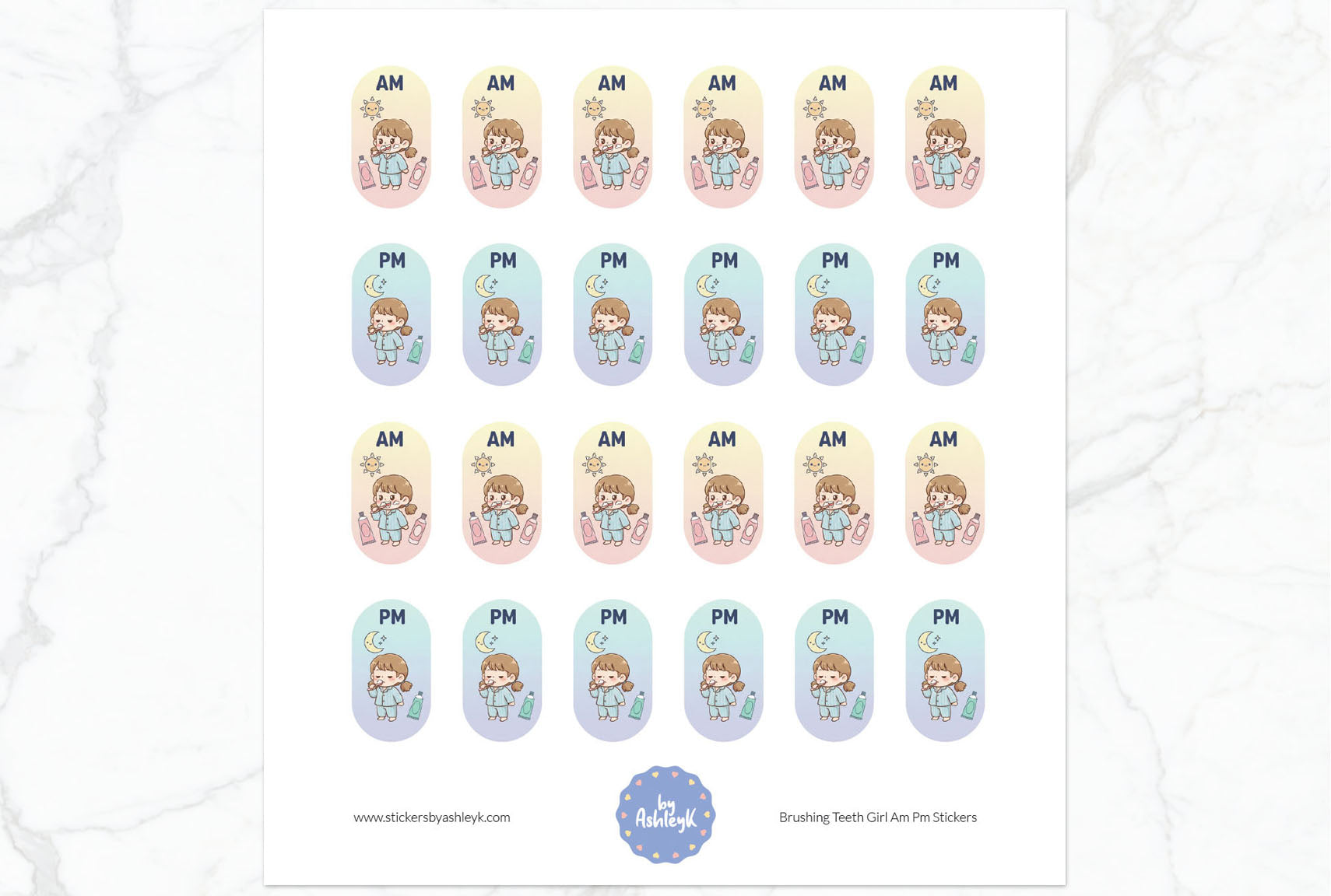 These brushing teeth girl am pm planner stickers have been beautifully designed by AshleyK to perfectly suit your Erin Condren Life Planner, Kikki K, FiloFax, The Happy Planner or other planner.