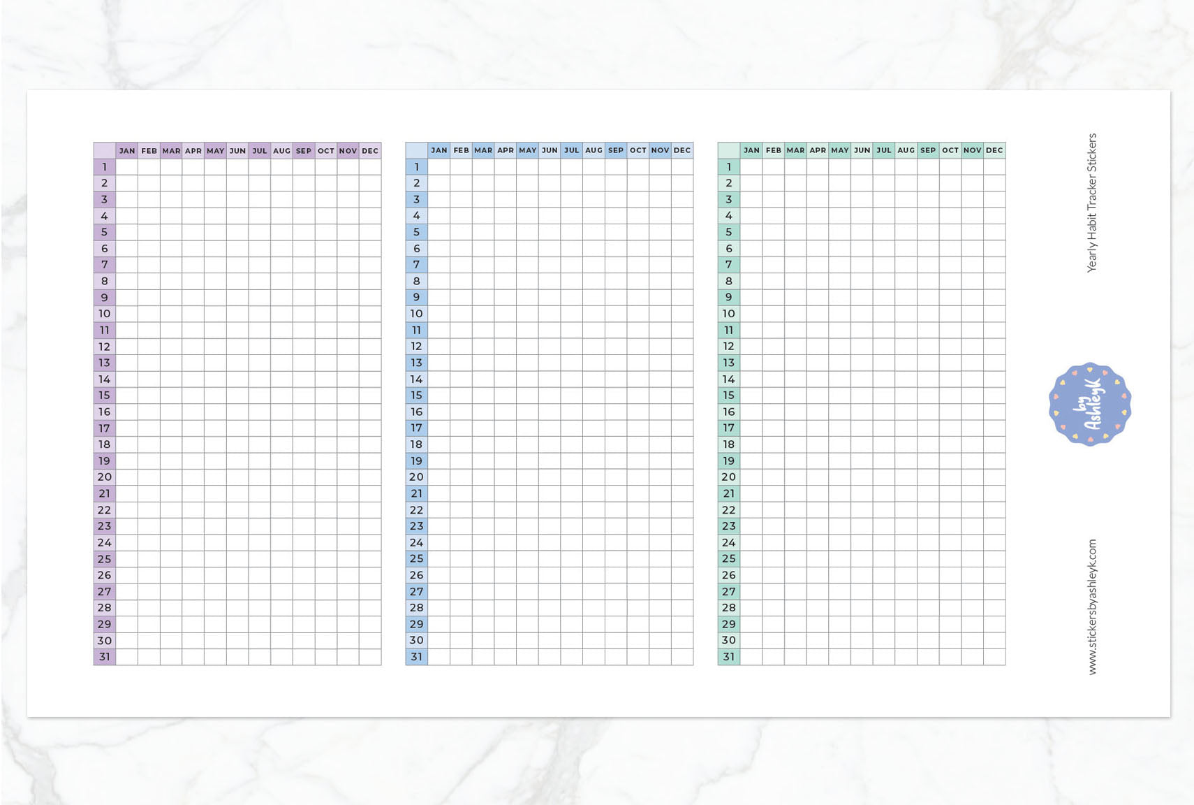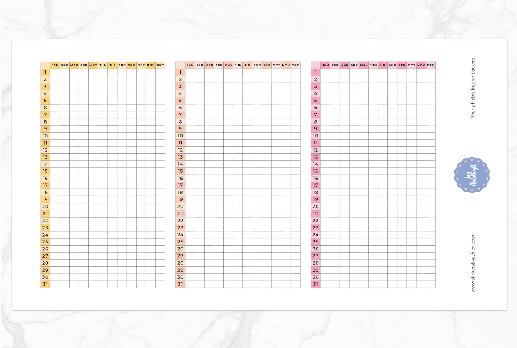 These yearly habit tracker planner stickers have been beautifully designed by AshleyK to perfectly suit your Erin Condren Life Planner, Kikki K, FiloFax, The Happy Planner or other planner.
