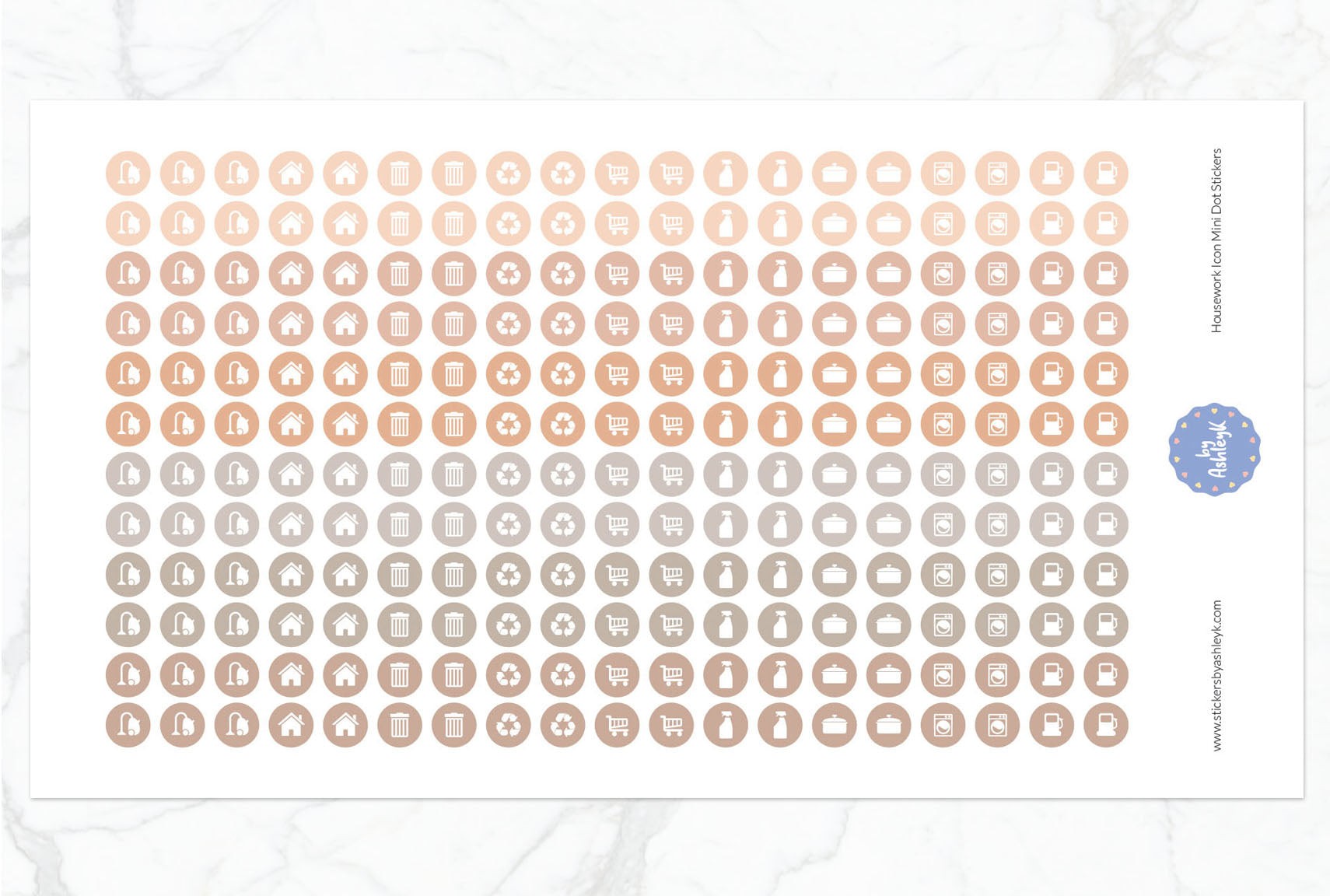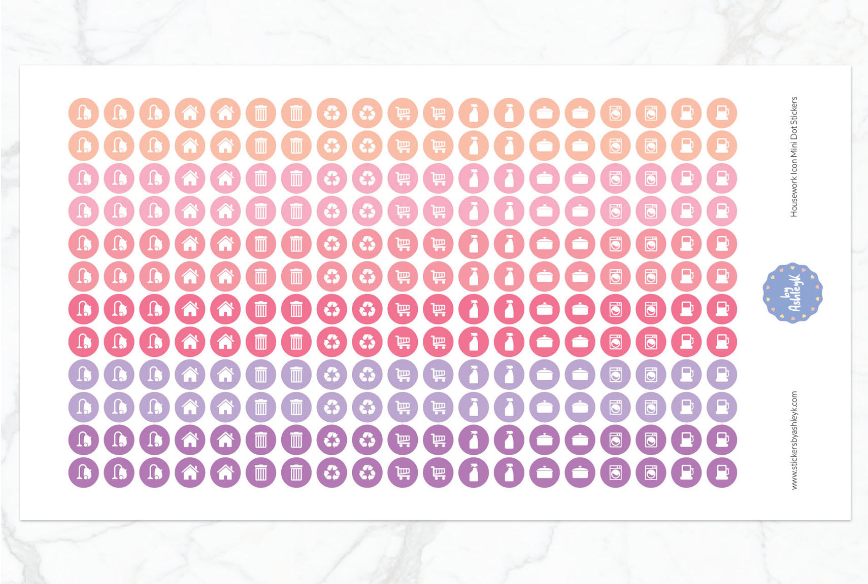 Housework Icon Mini Dot Planner Stickers - Pastel Sunset