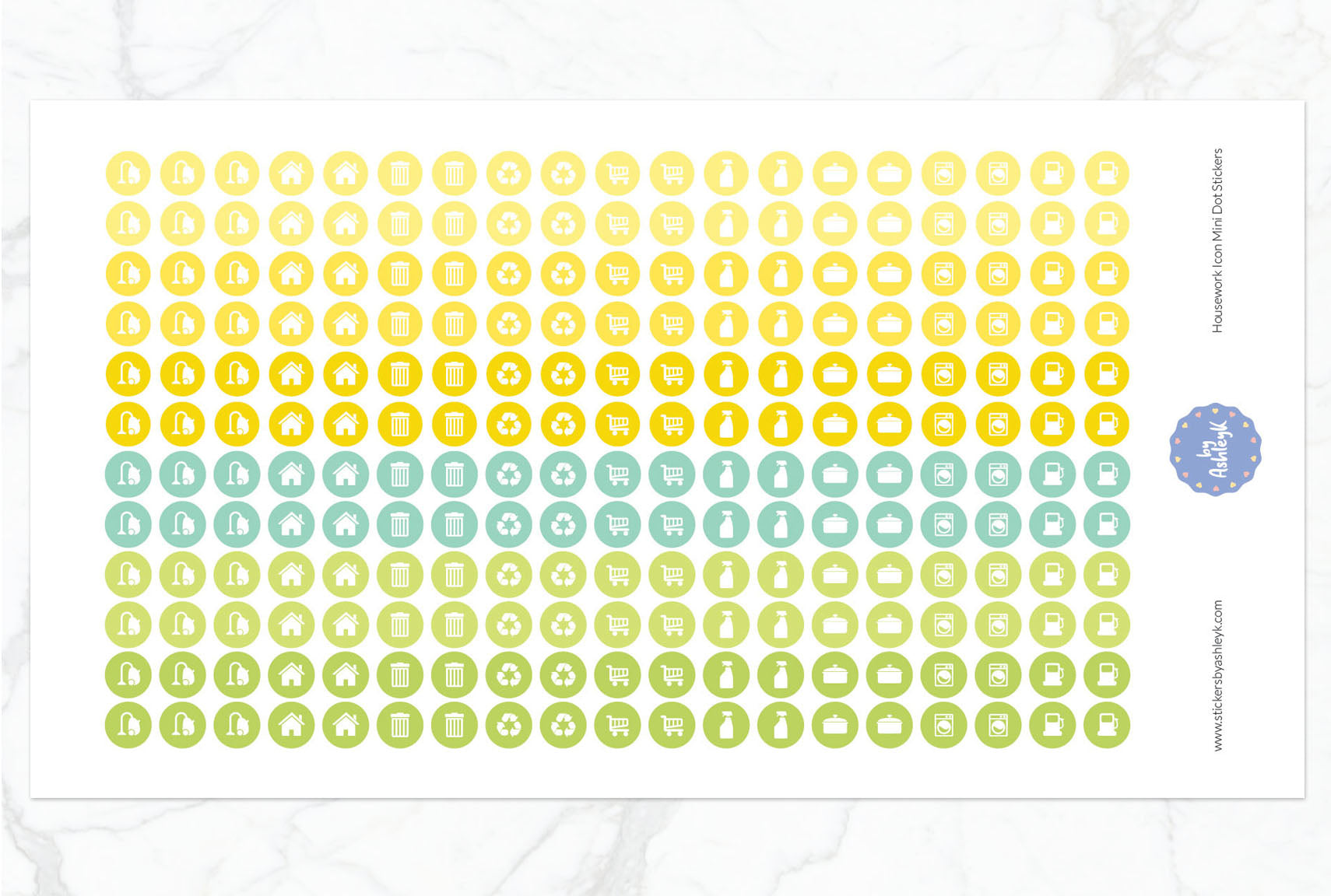 Housework Icon Mini Dot Planner Stickers - Lemon&Lime