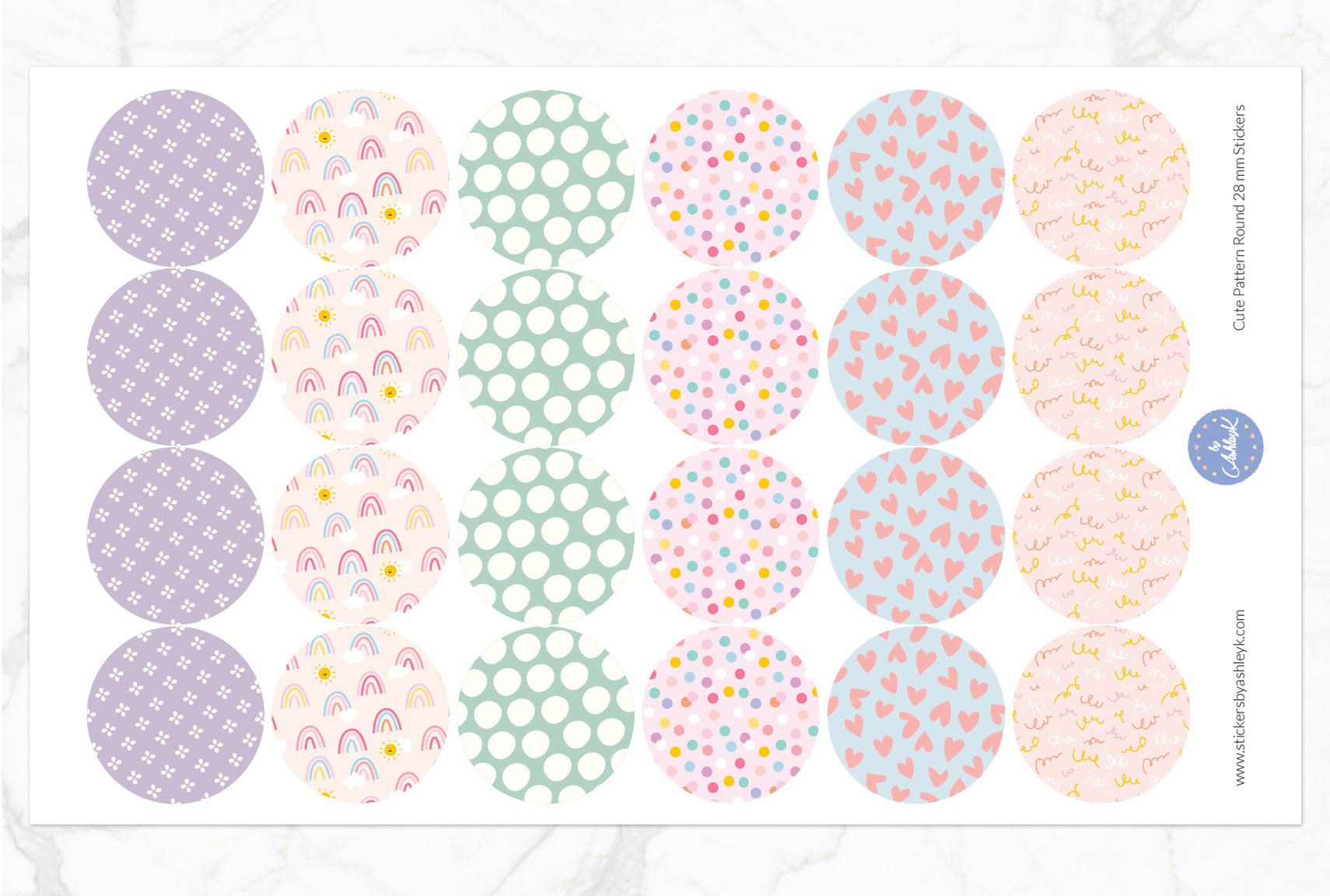 Cute Pattern Round 28mm Planner Stickers