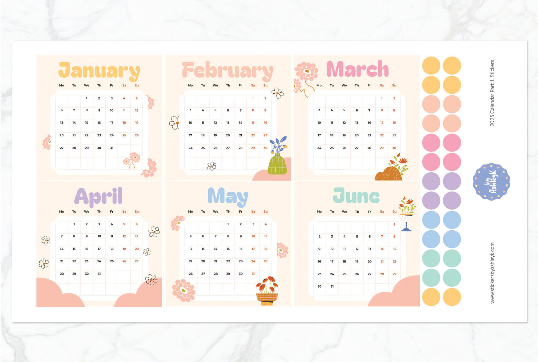 2025 Monthly Calendar Planner Stickers β Pastel Floral Theme πΈ