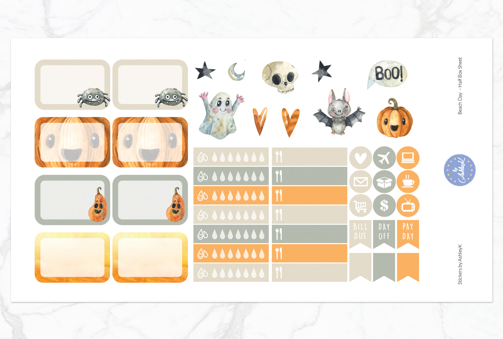 Get into the spooky spirit with my Halloween Party Weekly Kit Stickers, perfectly sized for yourLeafy Treetops Planner! This festive kit includes everything you need to plan your week—full boxes, checklists, headers, washi strips, and fun decorative stickers featuring pumpkins, ghosts, and more. Designed for easy peel-and-stick application, each sheet adds a pop of Halloween charm while keeping you organised. The vibrant colours and playful designs make planning your week feel like part of the celebration. Ideal for Halloween lovers, party planners, or anyone looking to add seasonal flair to their planner!