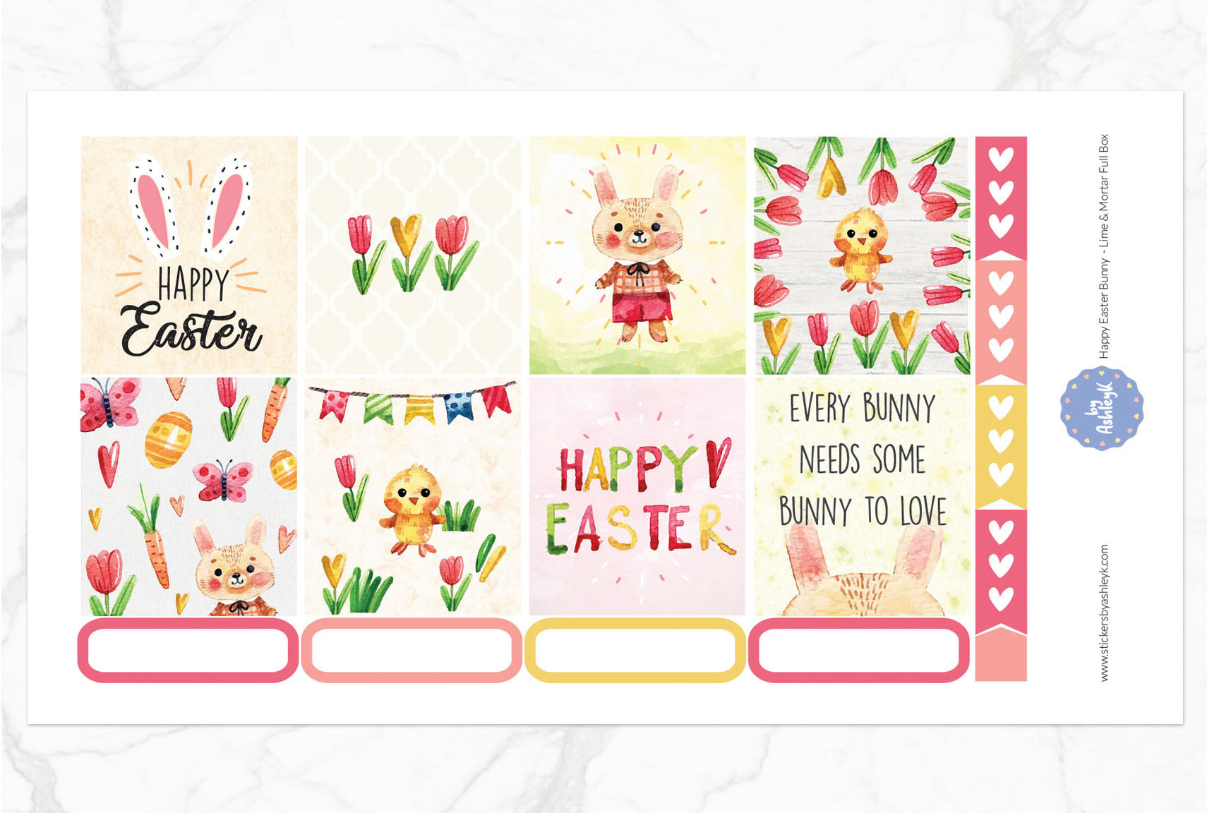 Happy Easter Bunny Full Box Stickers for Lime and Mortar Planner
