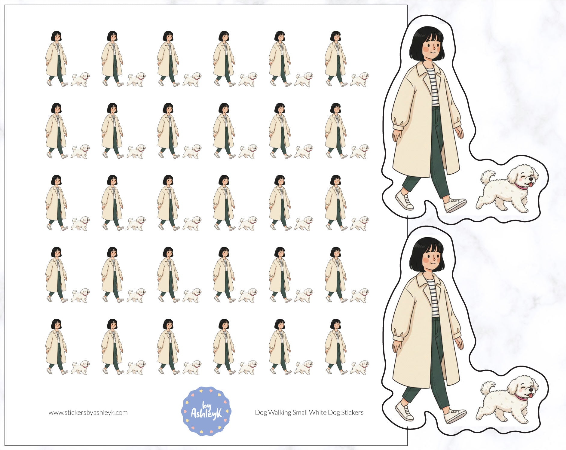 These dog walking small white dog stickers have been beautifully designed by AshleyK to perfectly suit your Erin Condren Life Planner, Kikki K, FiloFax, The Happy Planner or other planner.