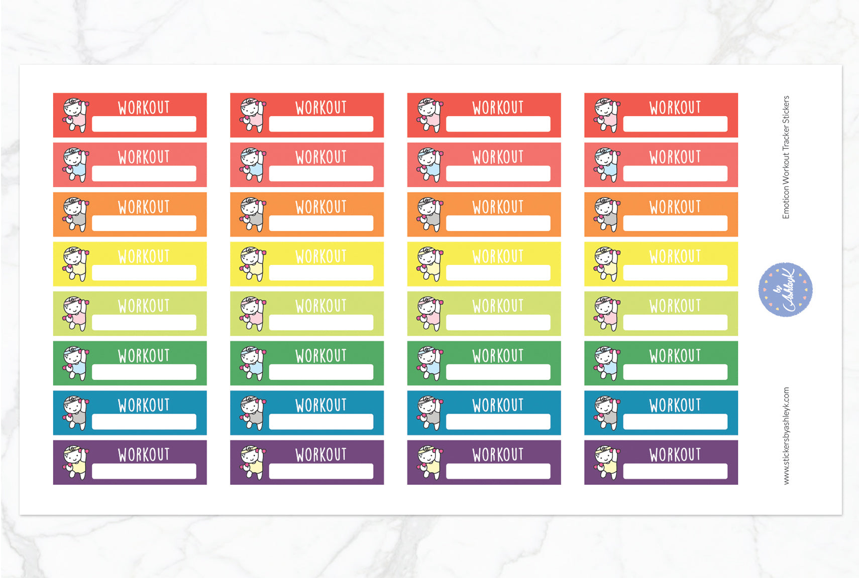 Emoticon Workout Tracker Stickers - Pastel Rainbow